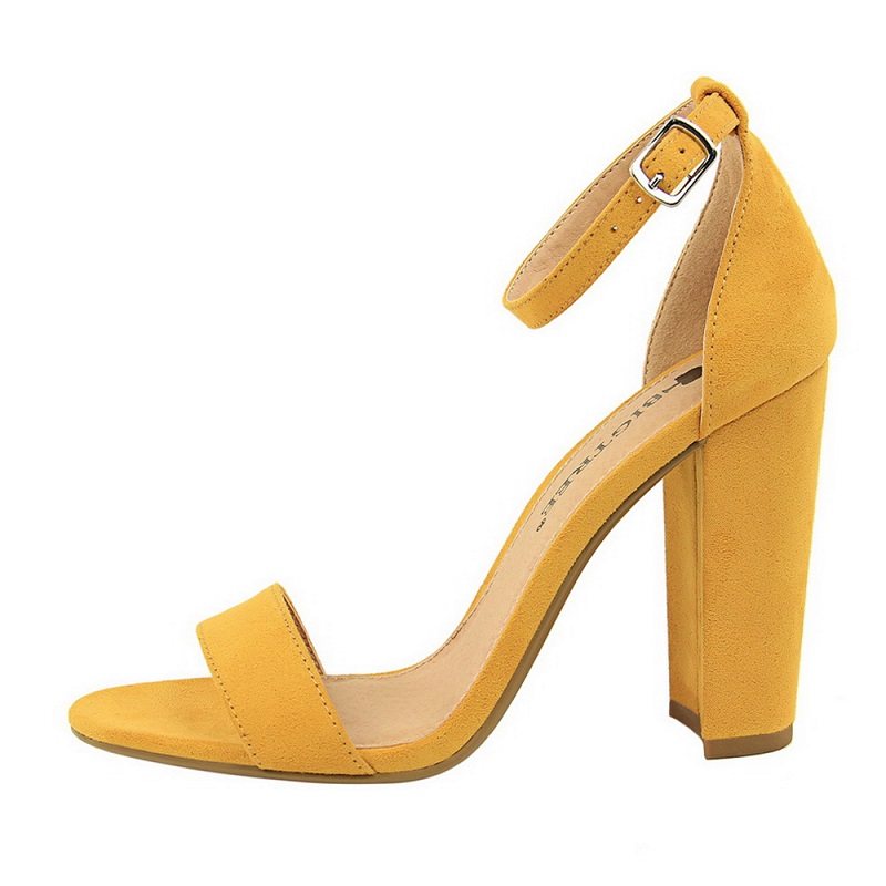 欧美简约粗跟凉鞋性感夜店一字带白色皮面夏季大码绒面宴会高跟鞋