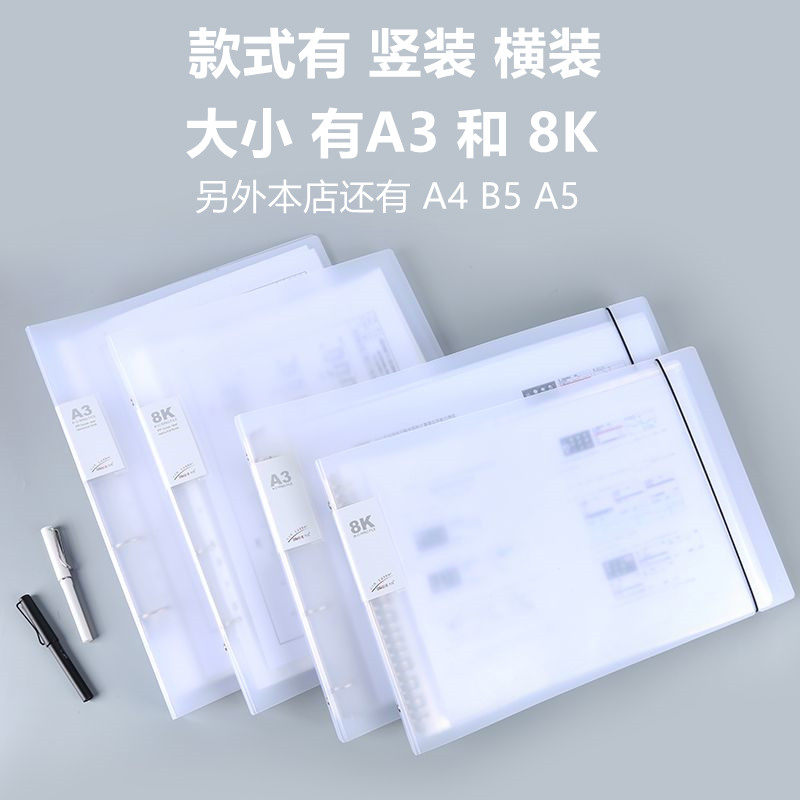 8K大本活页透明资料册外壳a3活页文件夹画册纸绘图纸试卷收纳本夹