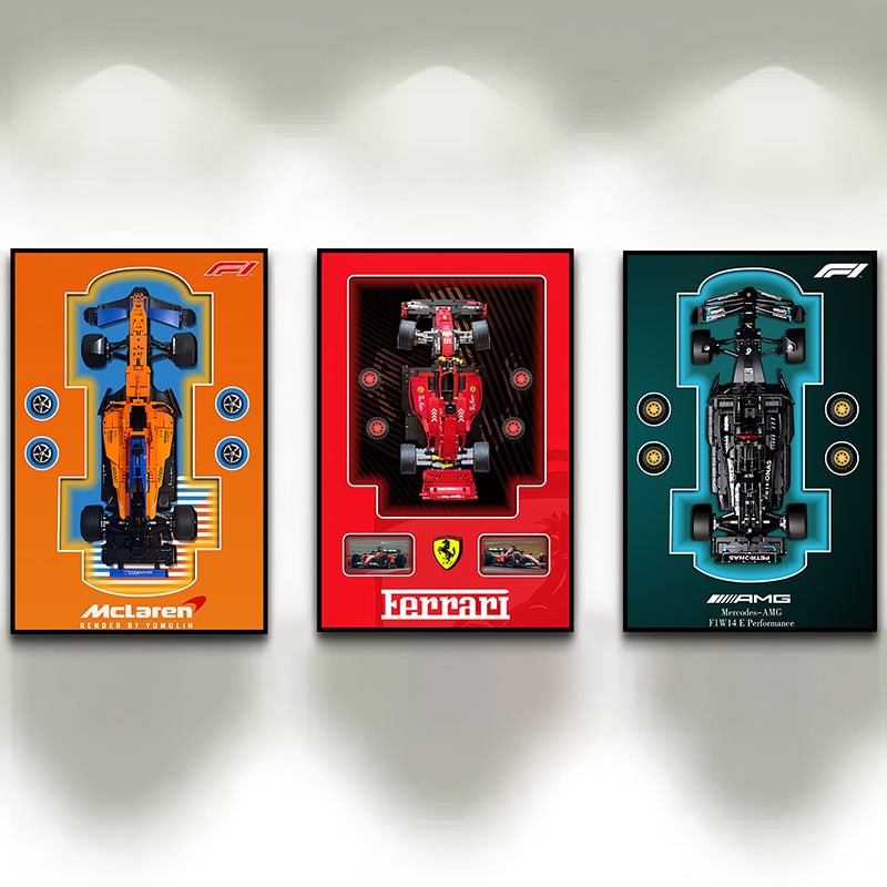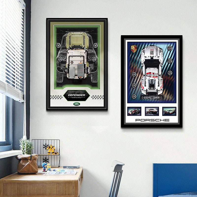 积木上墙立体实物画赛车模型2025相框版男孩卧室儿童床头遥控灯画