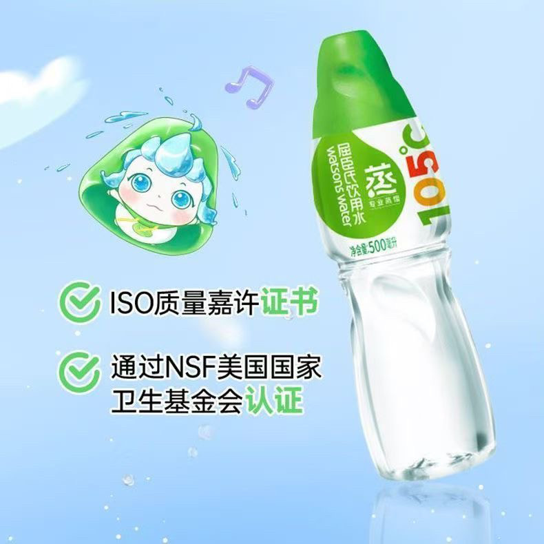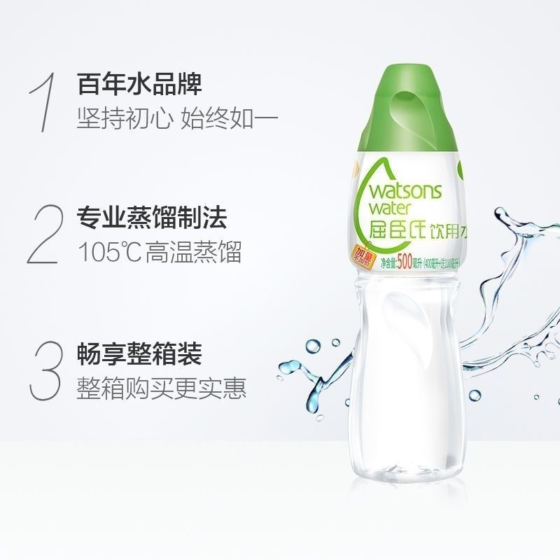 屈臣氏饮用水500mL*24瓶 105°高温蒸馏制法补水敷脸水疗护肤水