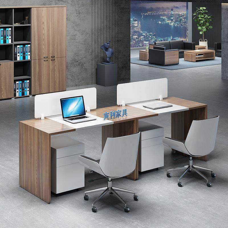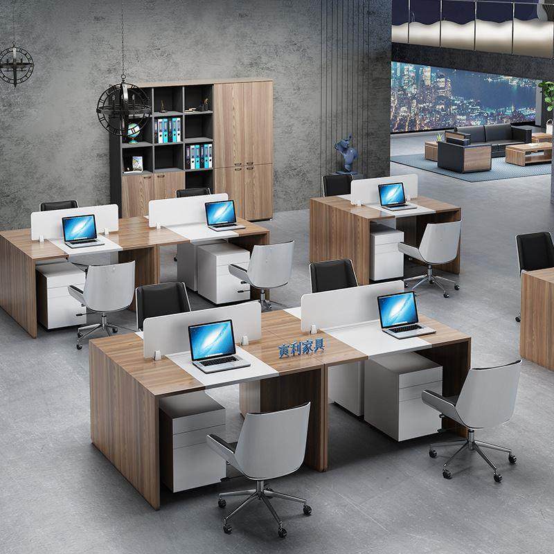 寅利实木皮烤漆职员办公桌简约现代4人位员工隔断办公室桌椅组合