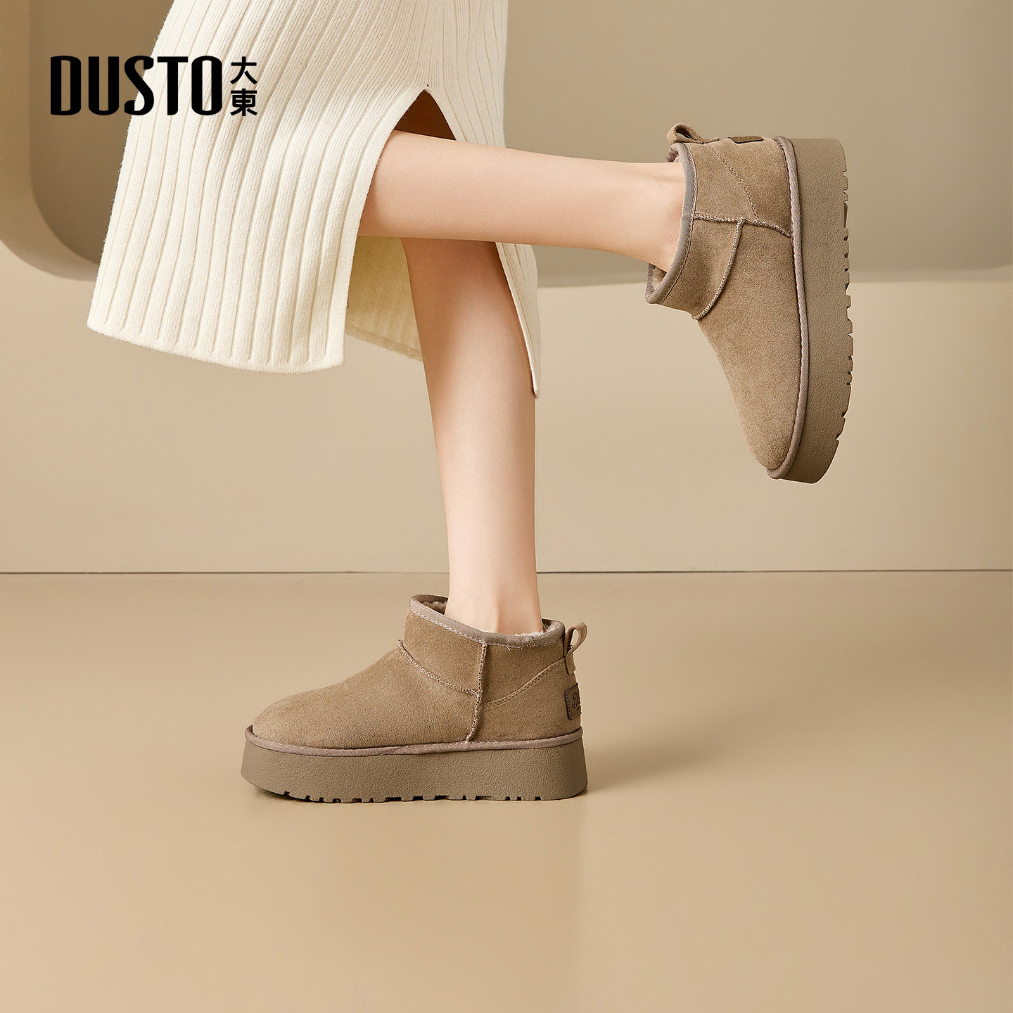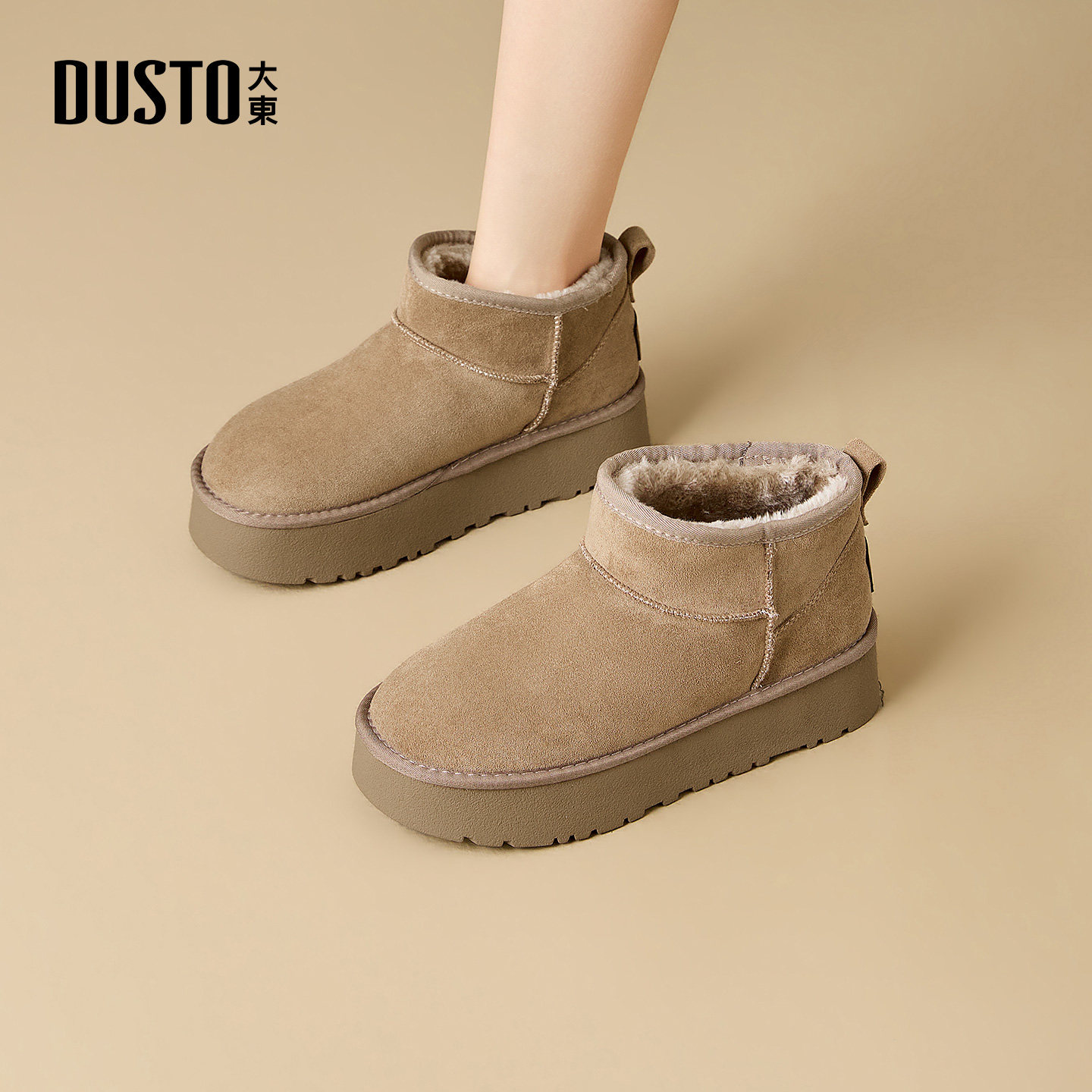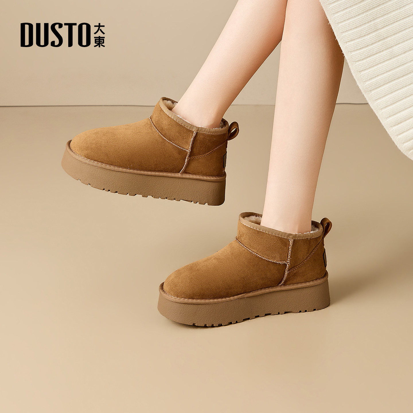 大东棕色加绒雪地靴女款2026新款冬季厚底保暖棉鞋雪地短靴面包鞋