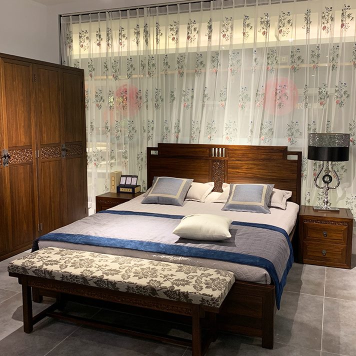 酒店家具1.8米双人床室禅意大床简约现代样板房 新中式实木床主卧