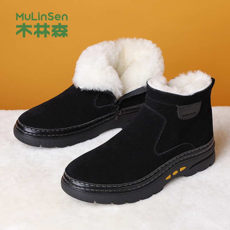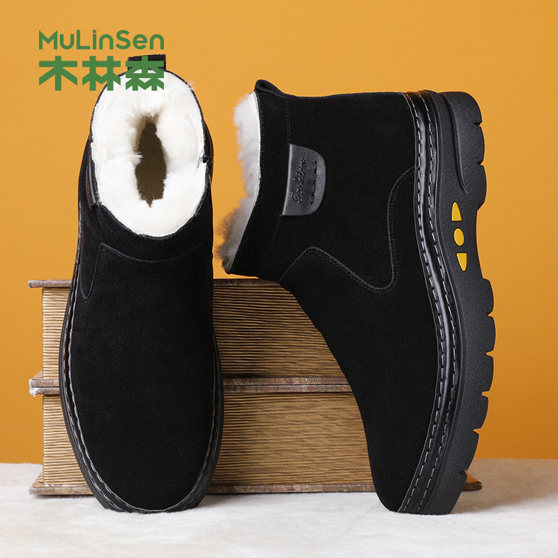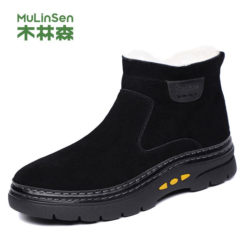 木林森男鞋加绒羊毛爸爸雪地棉靴