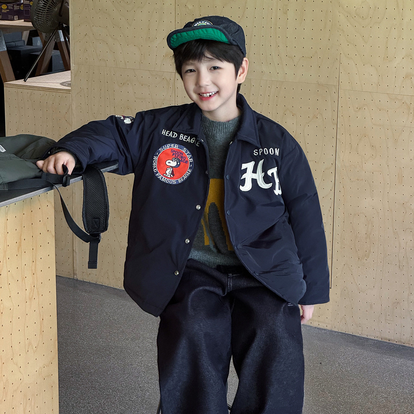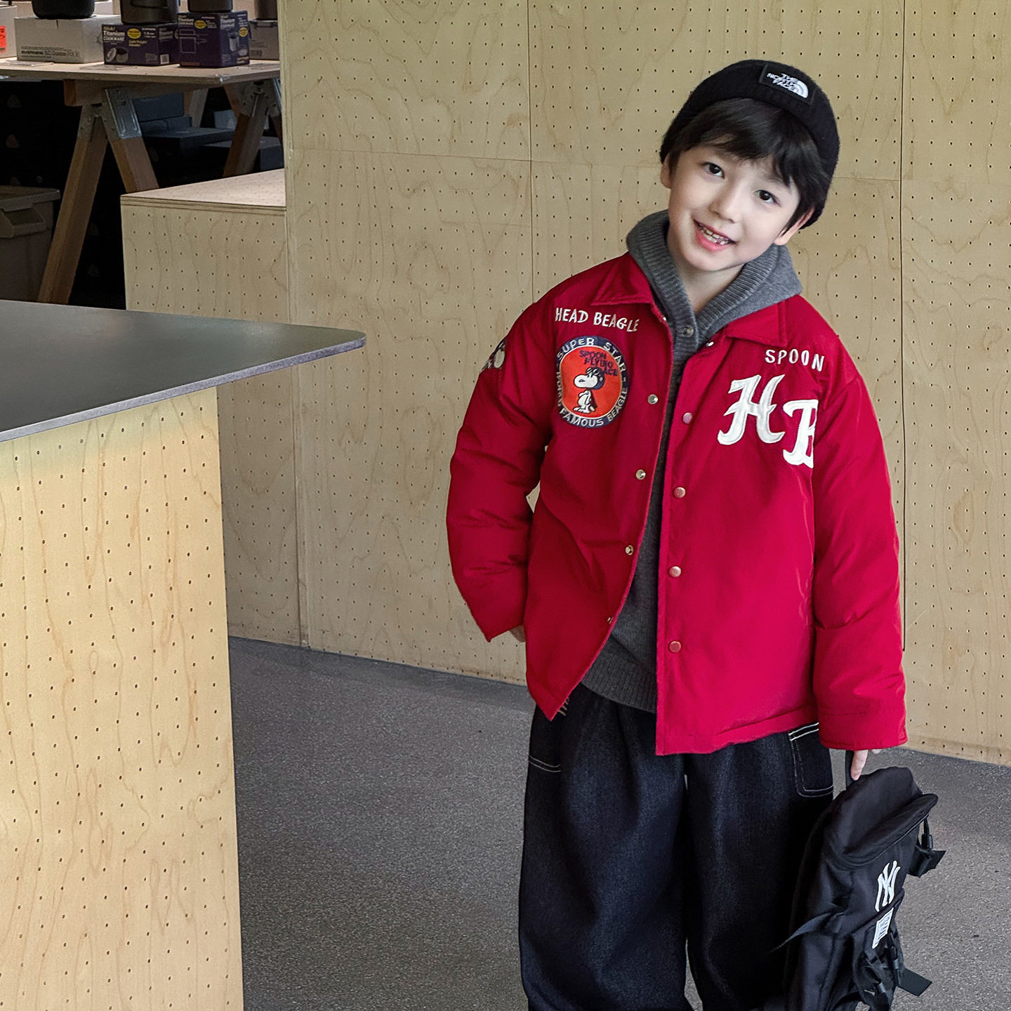 2025男童女童韩版棒球服绣花保暖羽绒服外套儿童保暖上衣百搭棉衣