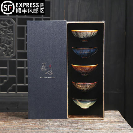 五行杯窑变主人杯单个粗陶功夫茶具陶瓷茶杯大号品茗杯礼盒装