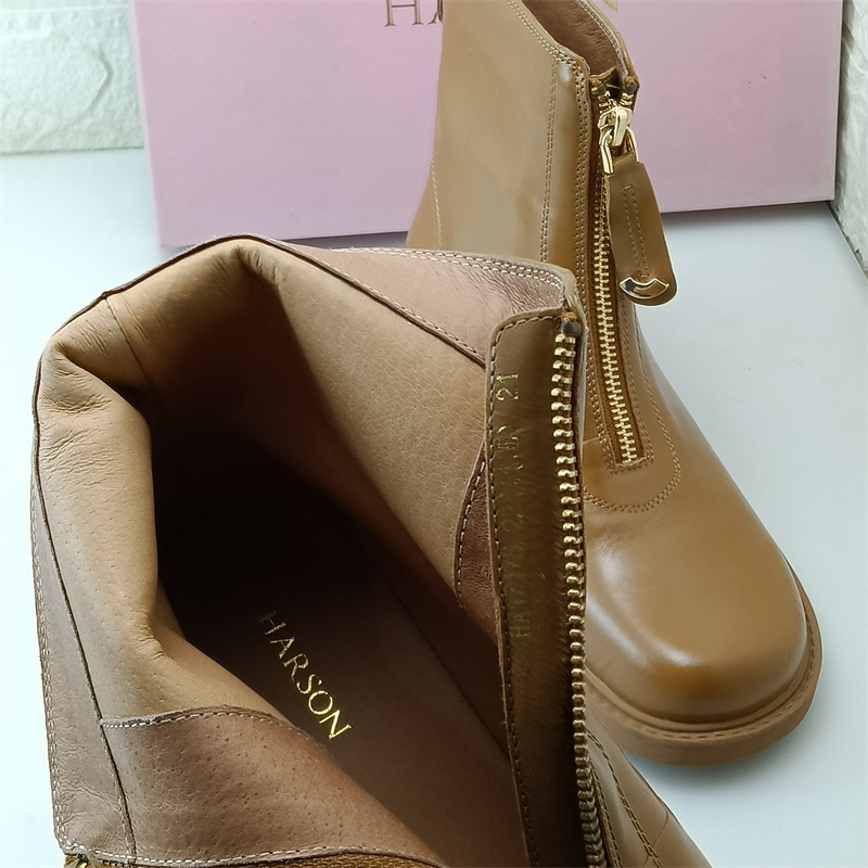 哈森女士真皮秋冬季单里马丁靴商场尾单撤柜断码处理牛皮裸靴孤品