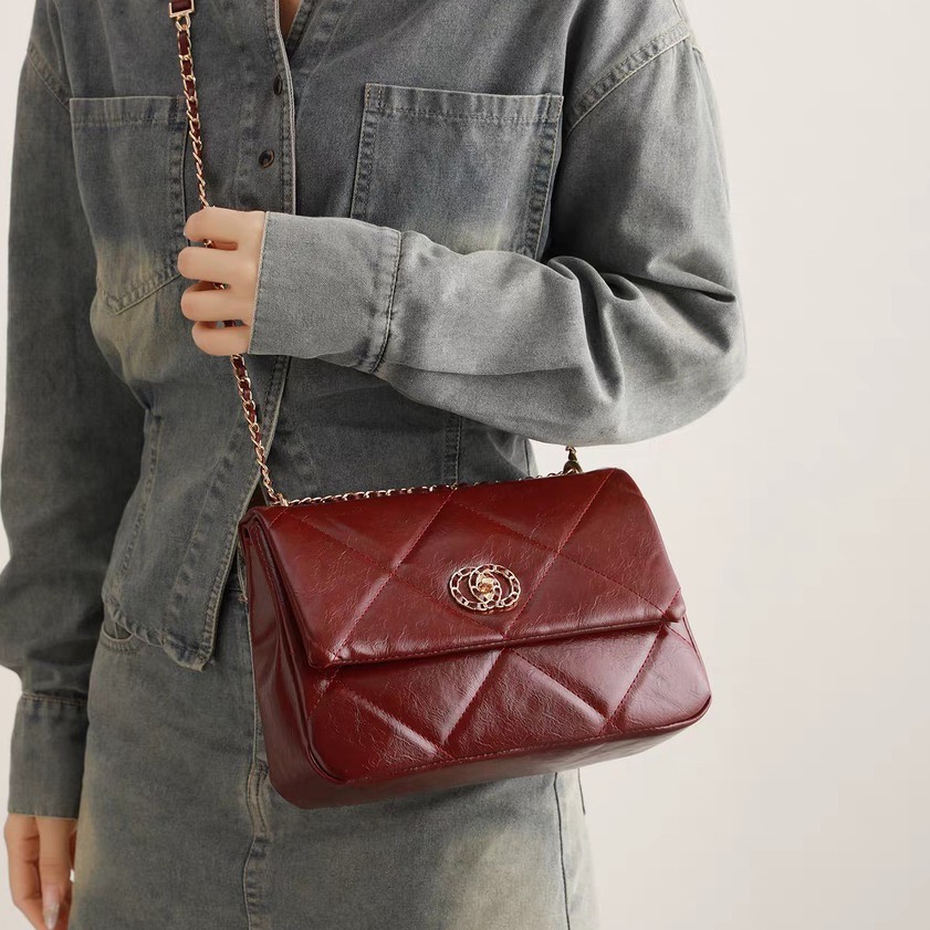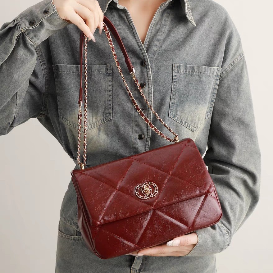 日本品质女士包包2025新款菱格链条包小香风腋下包通勤斜挎包女红