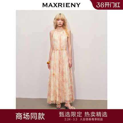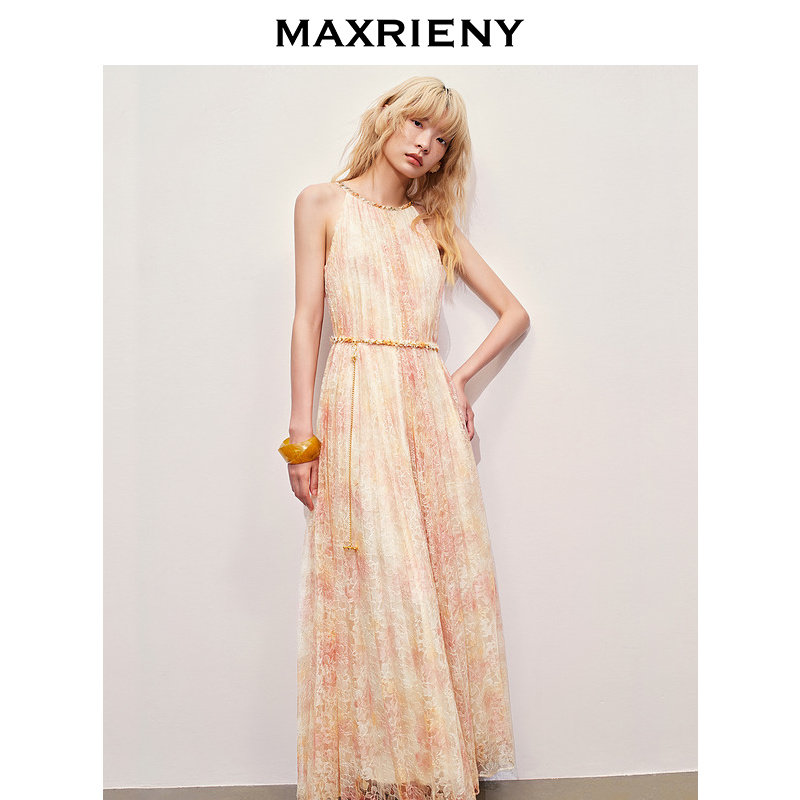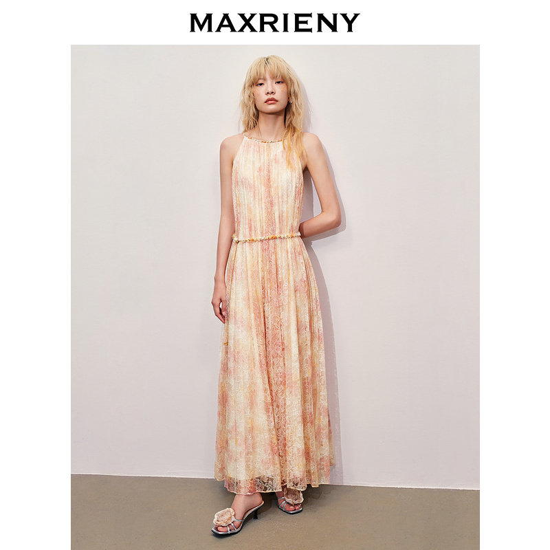 【异域·摩洛哥-商场同款】MAXRIENY晕染蕾丝重工压褶连衣裙