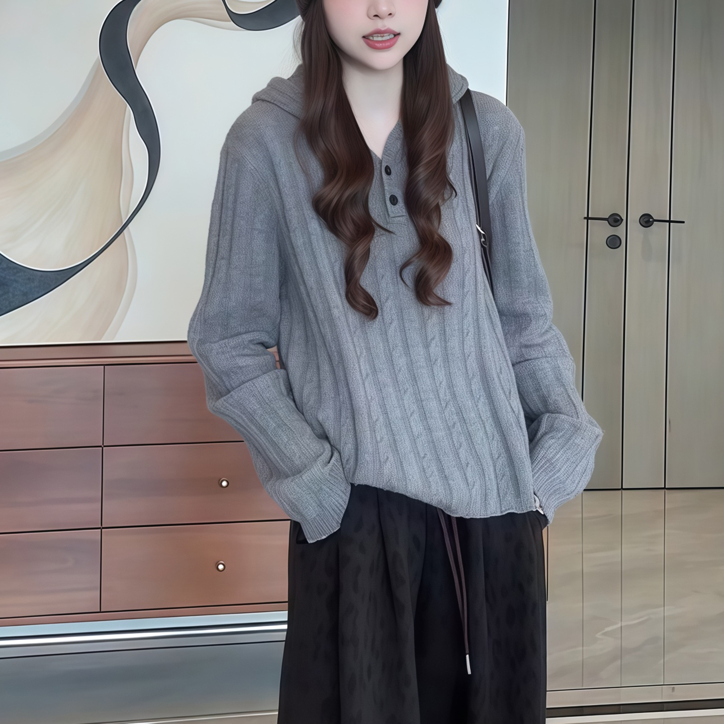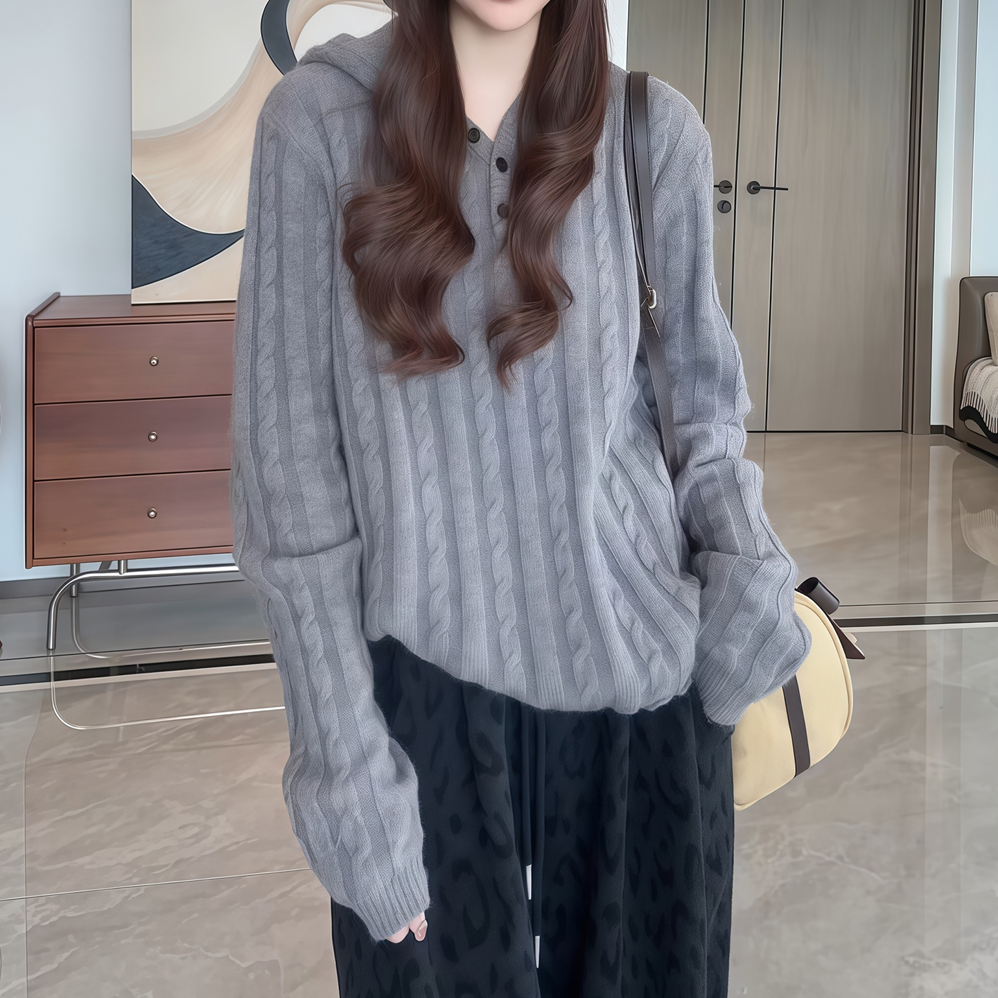 连帽毛衣女2025秋冬新款爆款高级感宽松慵懒风外套大码胖mm毛线衣