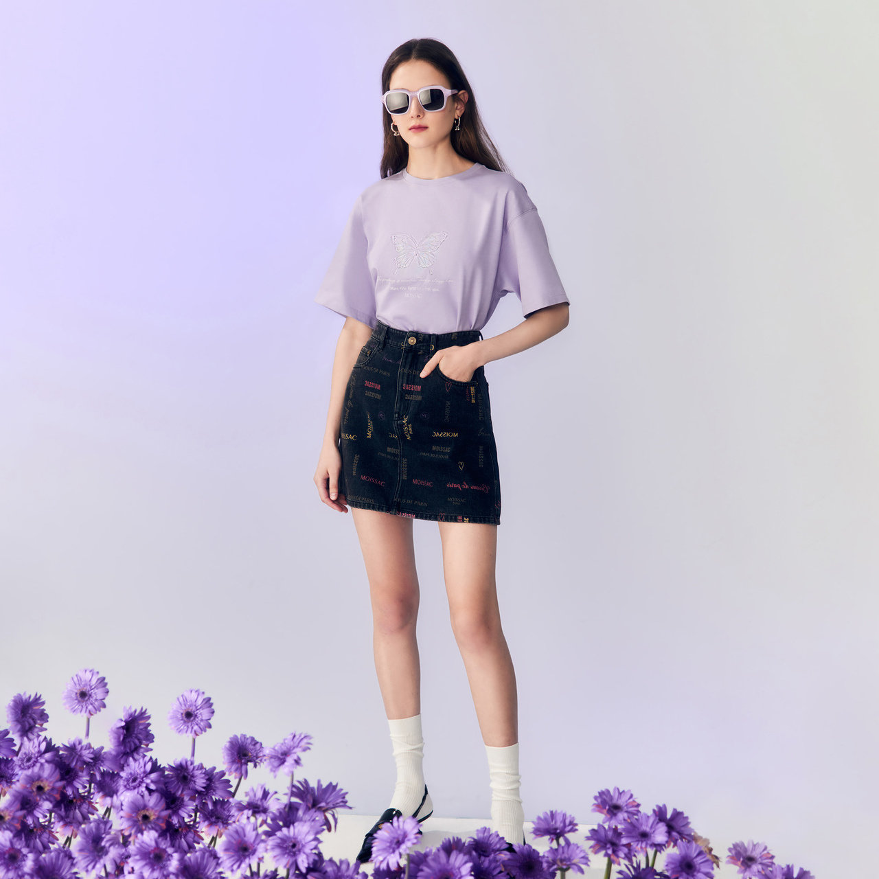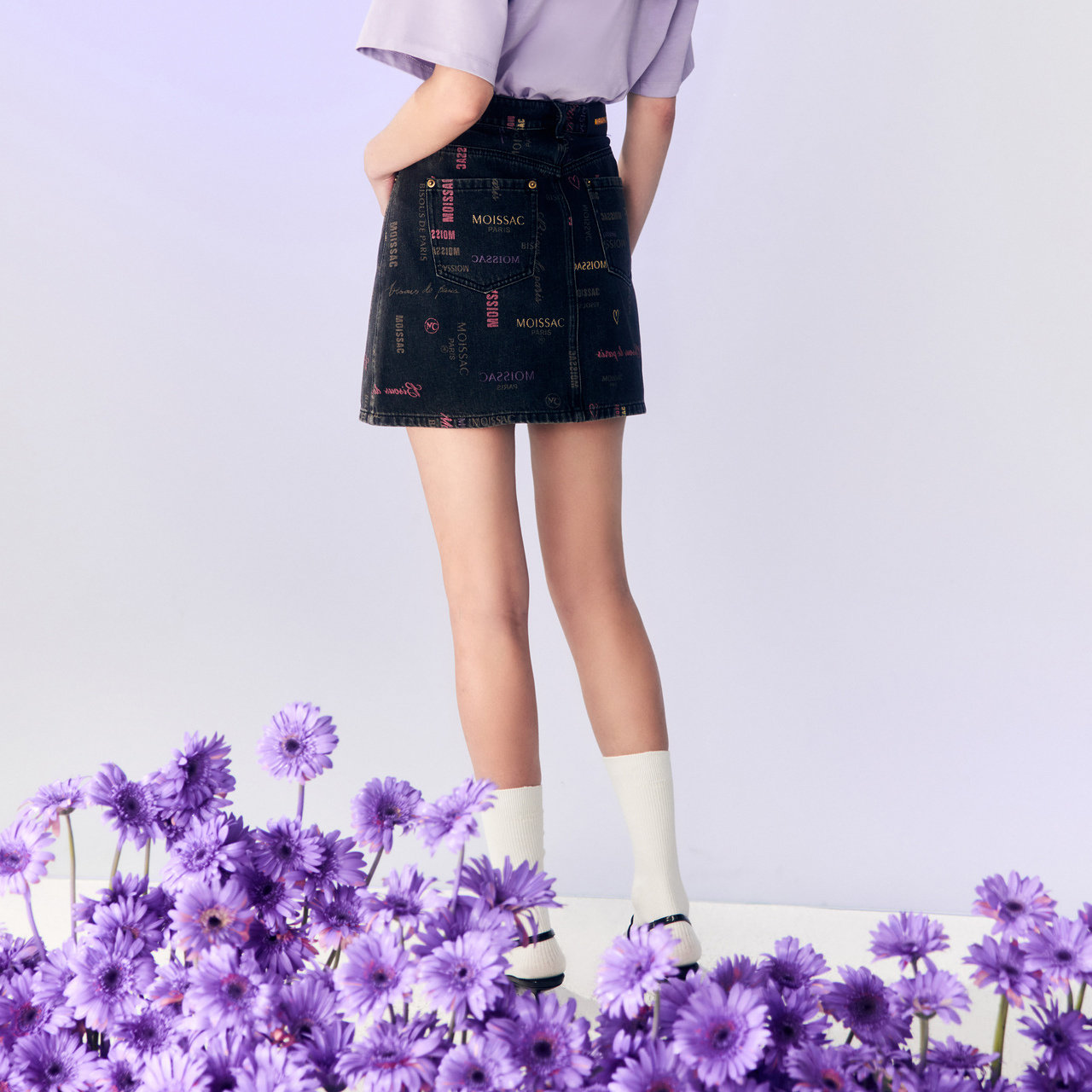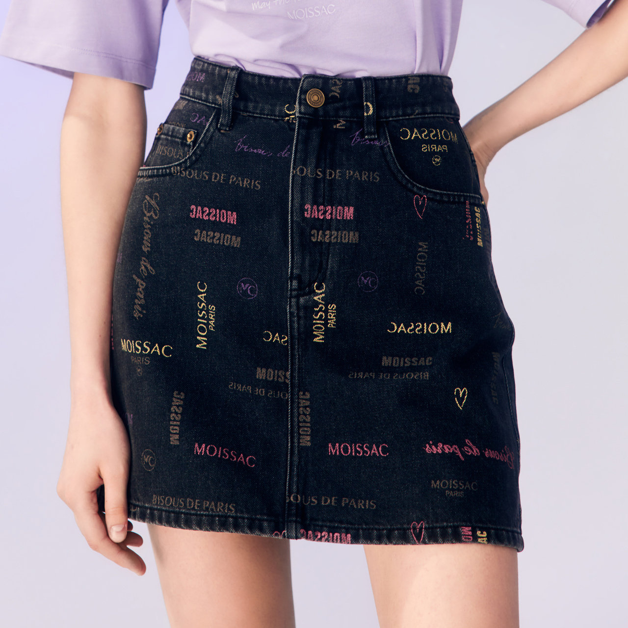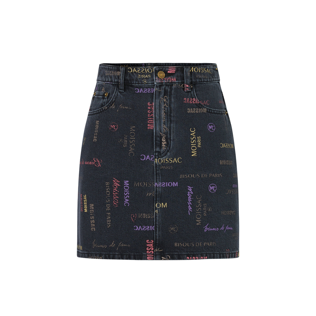 MOISSAC/摩萨克 夏季甜酷风黑色印花A字牛仔半身裙