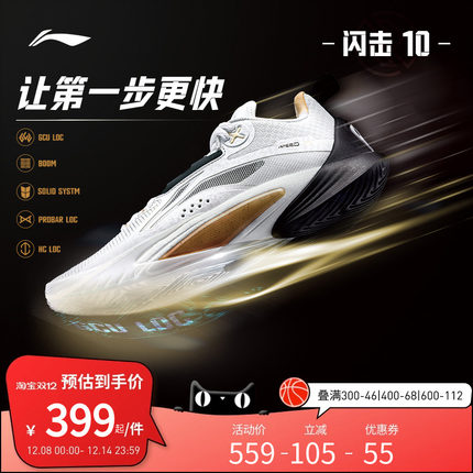 李宁篮球鞋 闪击10 男款减震防滑耐磨抗扭低帮专业比赛运动球鞋