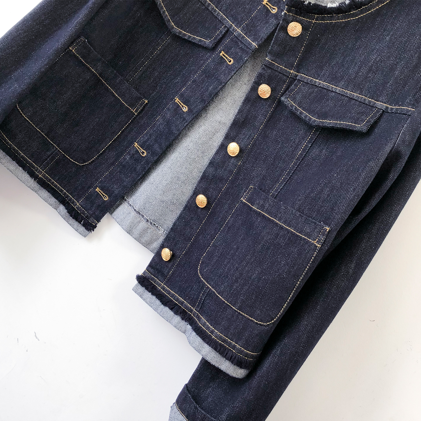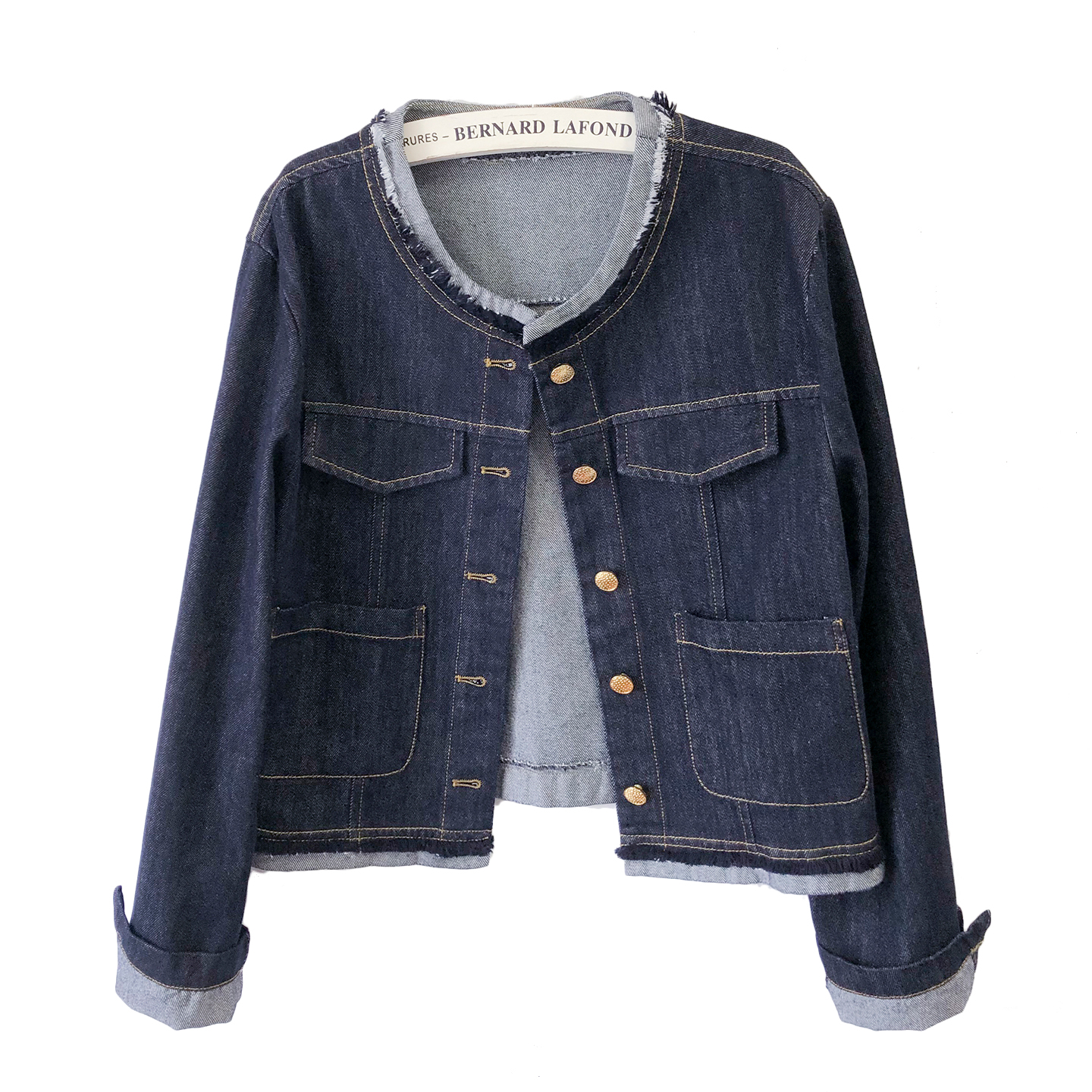 欧货复古小香风深蓝牛仔外套女2025新款春秋休闲显瘦夹克上衣短款