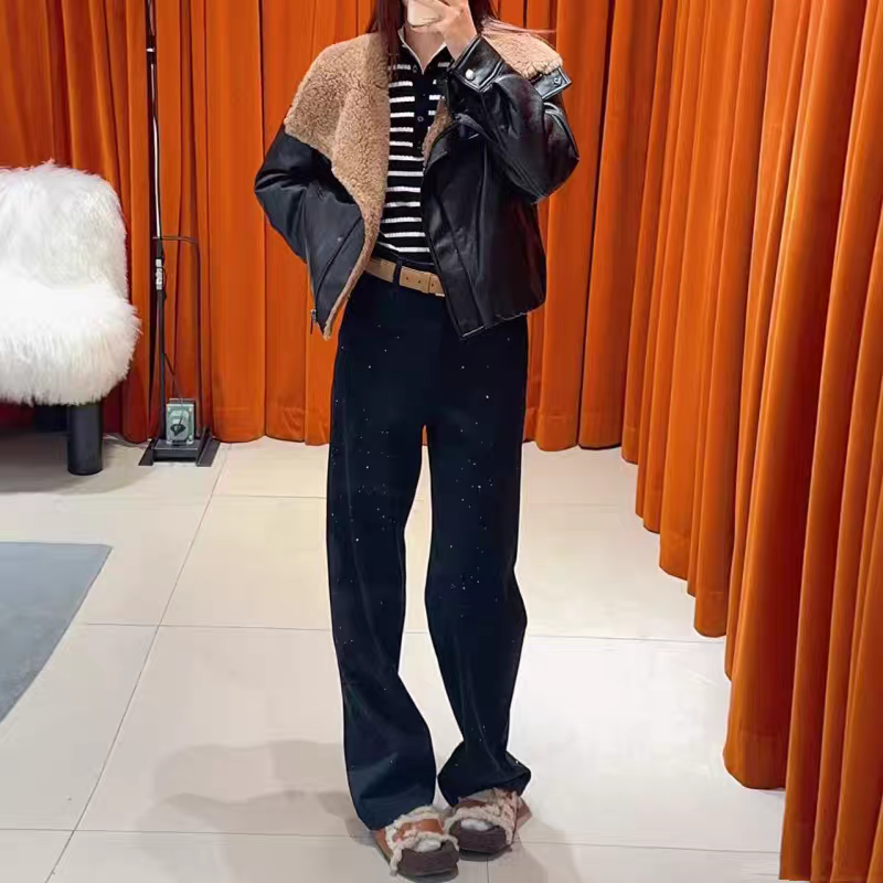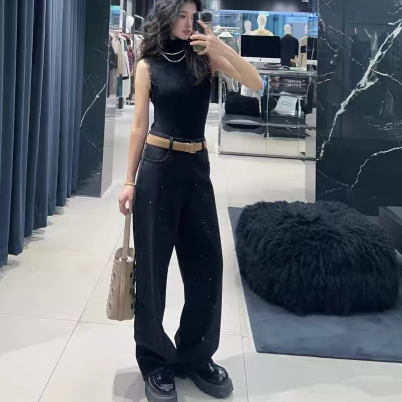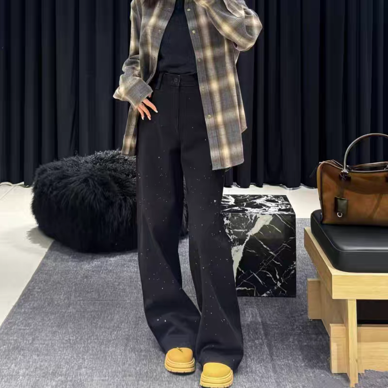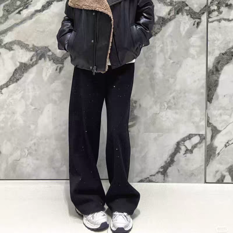 正品牛仔裤2025冬新品摇滚烫钻棉质中腰宽直筒裤阔腿裤MBE4JEN014