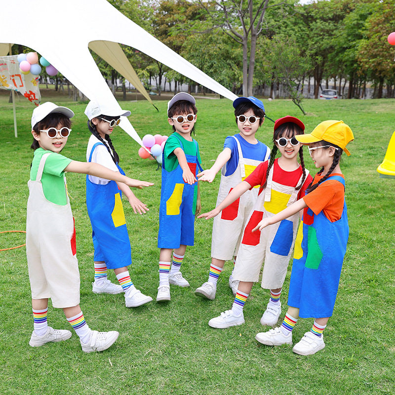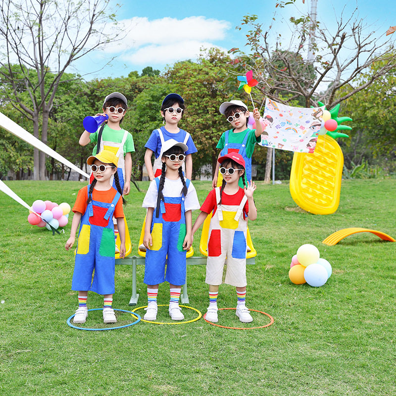六一儿童演出服啦啦队小学生运动会服装幼儿园可爱彩色背带裤班服