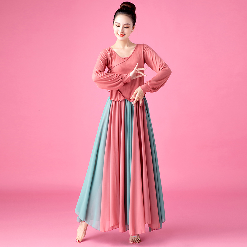 古典舞演出服女中国风飘逸古风长裙舞蹈服装雪纺大摆裙仙气套装女