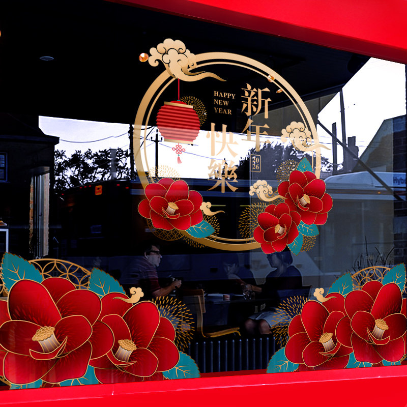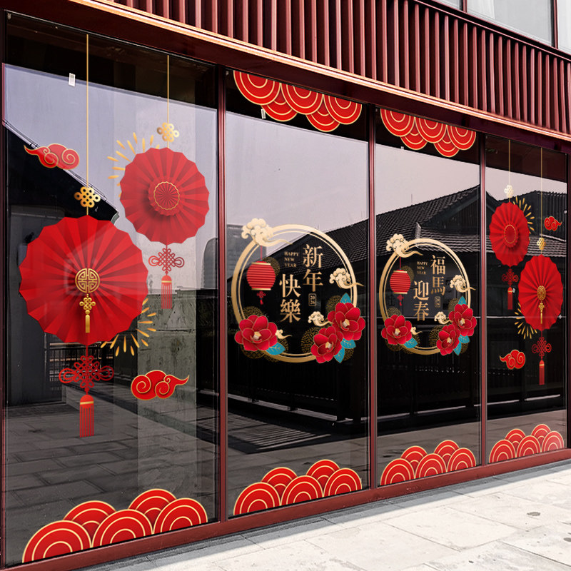 新年装饰中式窗花2026春节窗贴马年门贴过年店铺橱窗静电玻璃贴纸