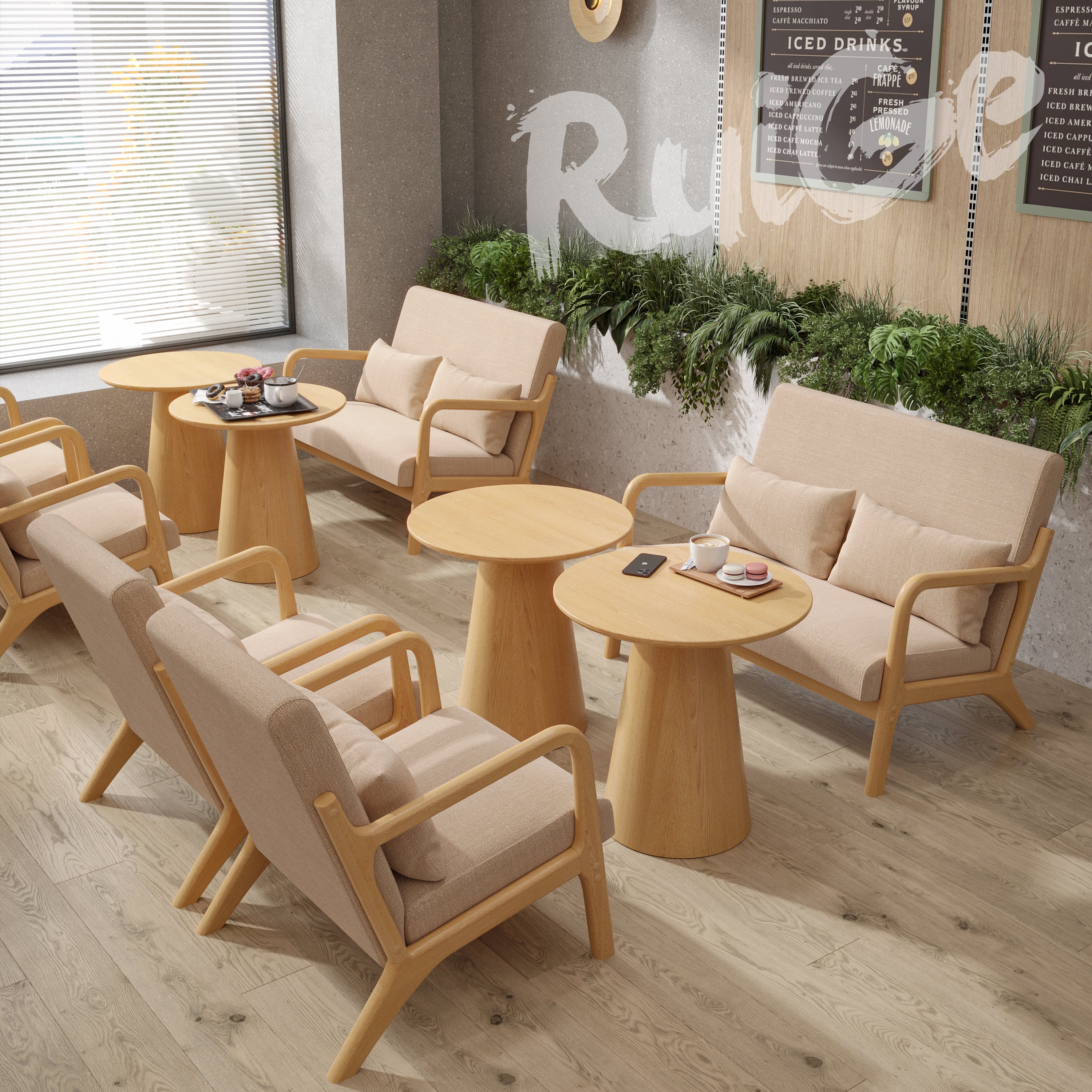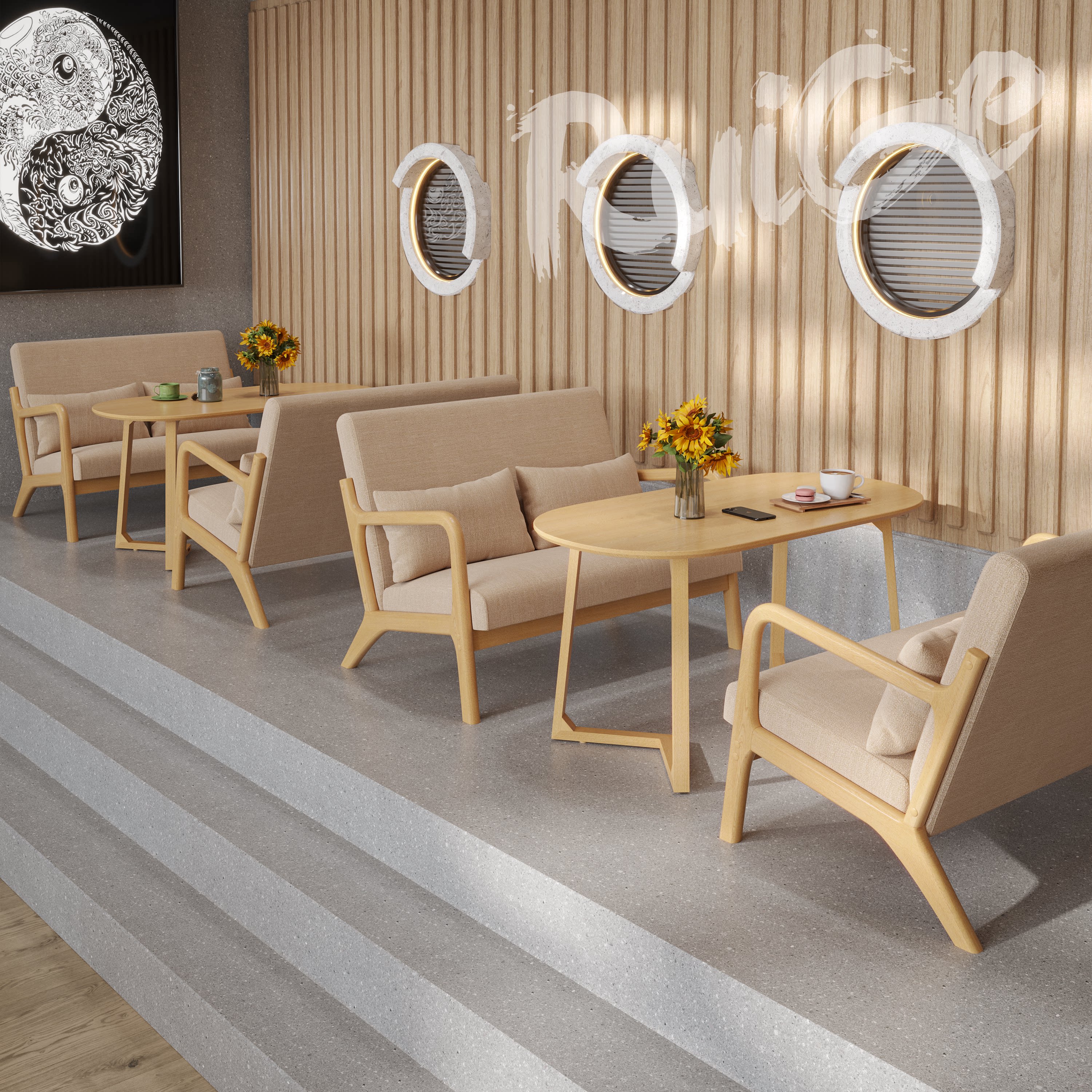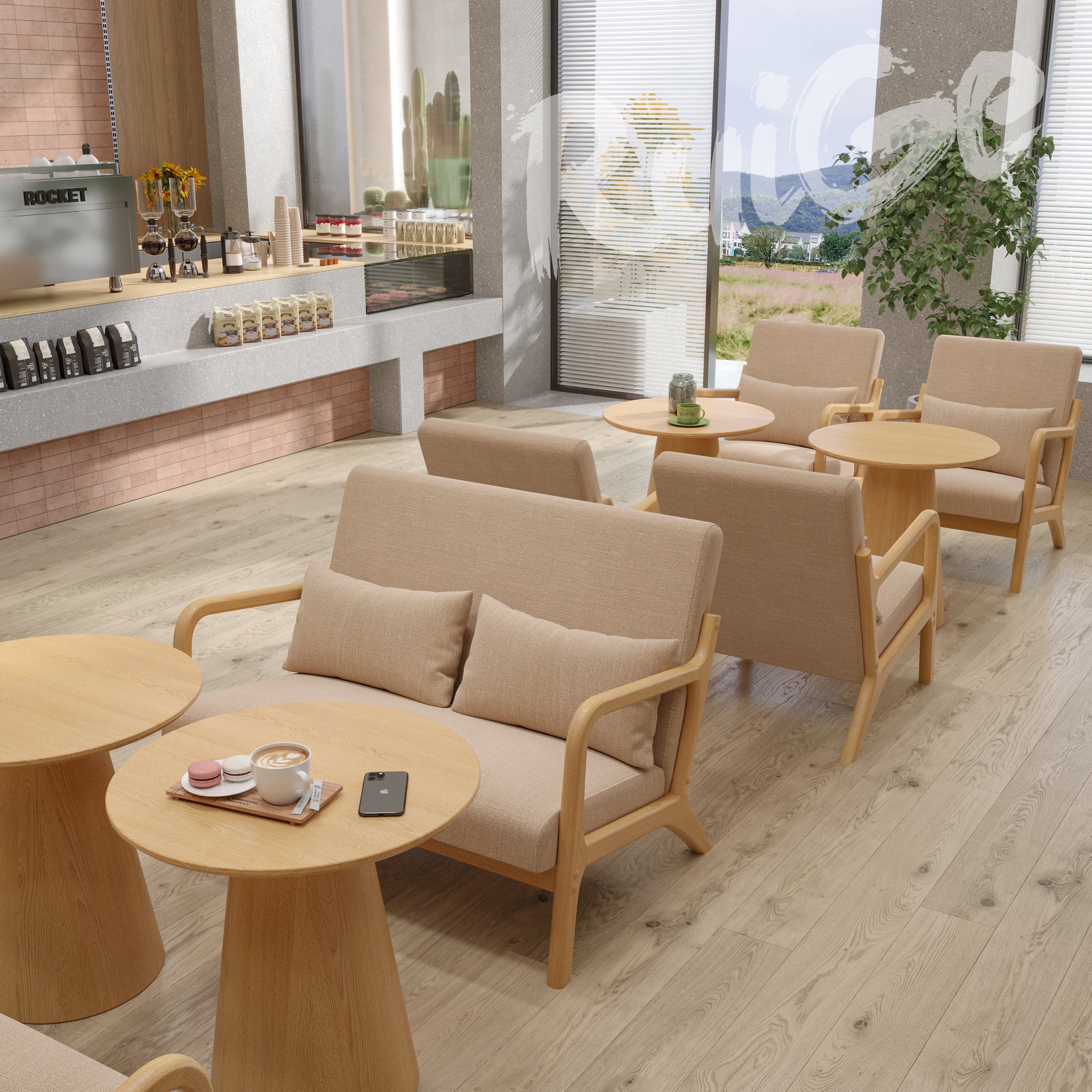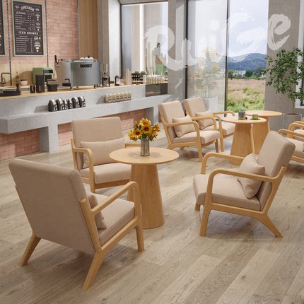 实木休闲咖啡厅奶茶店民宿休息区桌椅卡座商用洽谈接待沙发组合