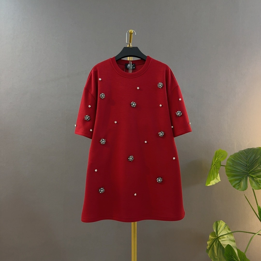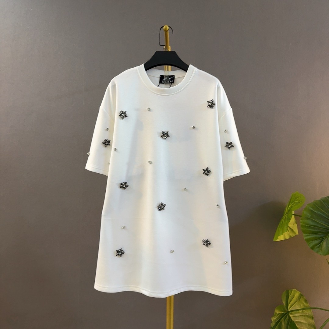 欧洲站大码女装中长款宽松遮肉显瘦休闲钉珠短袖T恤圆领打底衫女