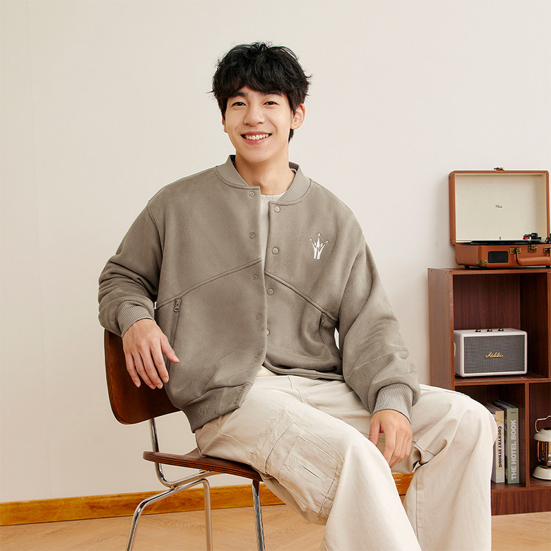 361运动外套男约基奇冬季短款加绒保暖棒球服休闲工装上衣夹克