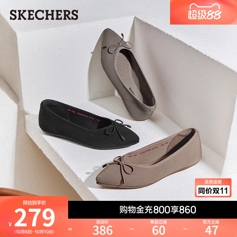 斯凯奇蝴蝶结浅口单鞋2025新款夏女鞋尖头平底鞋透气网面玛丽珍鞋