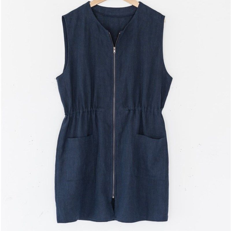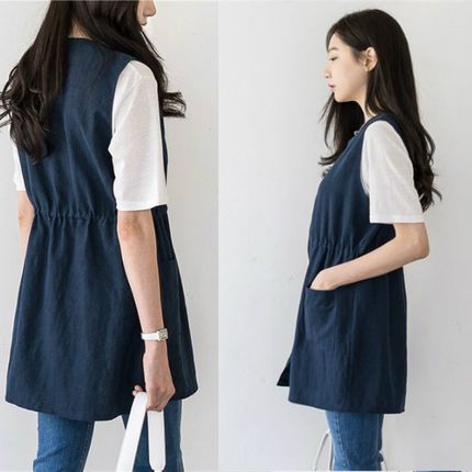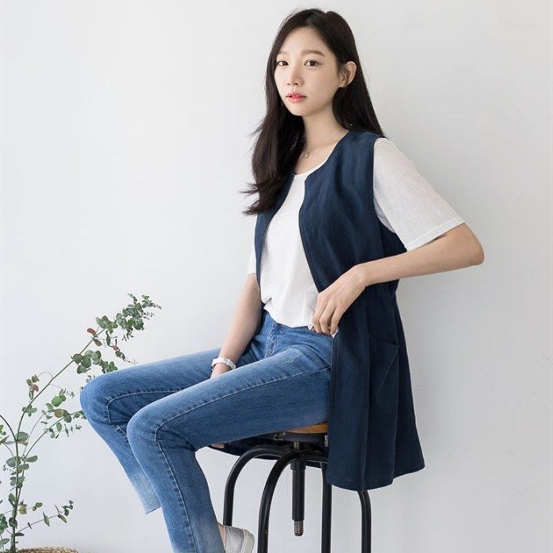 春季中长款休闲亚麻马甲女2025B韩版宽松大码夏薄棉麻料西装领马