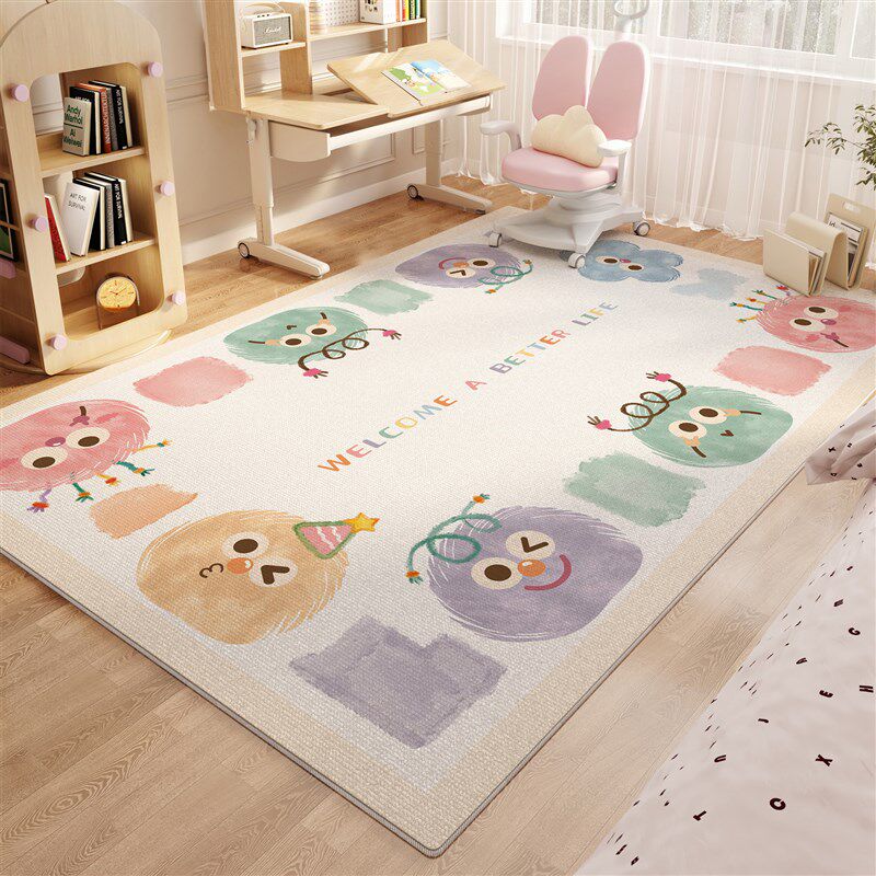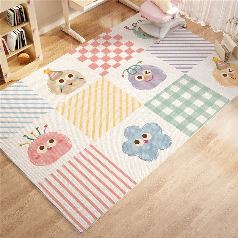 儿童房学习桌地毯卧室阅读区x卡通电脑桌椅加厚毛绒地垫新款床边