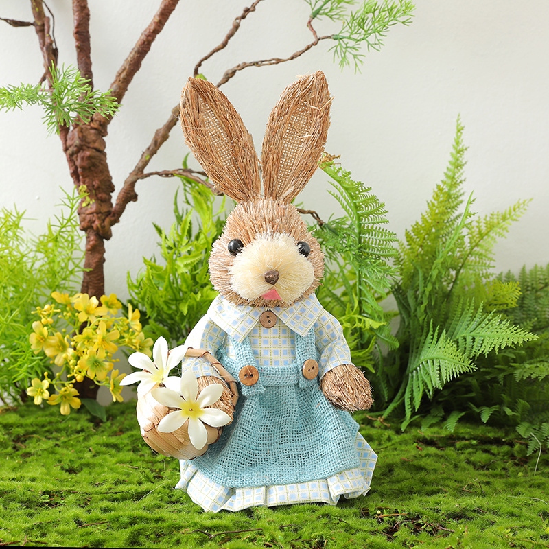 森系田园风草编兔子摆件幼儿园植物角装饰庭院花园婚庆布置艺品