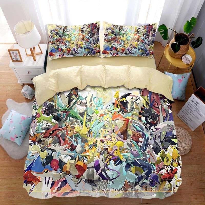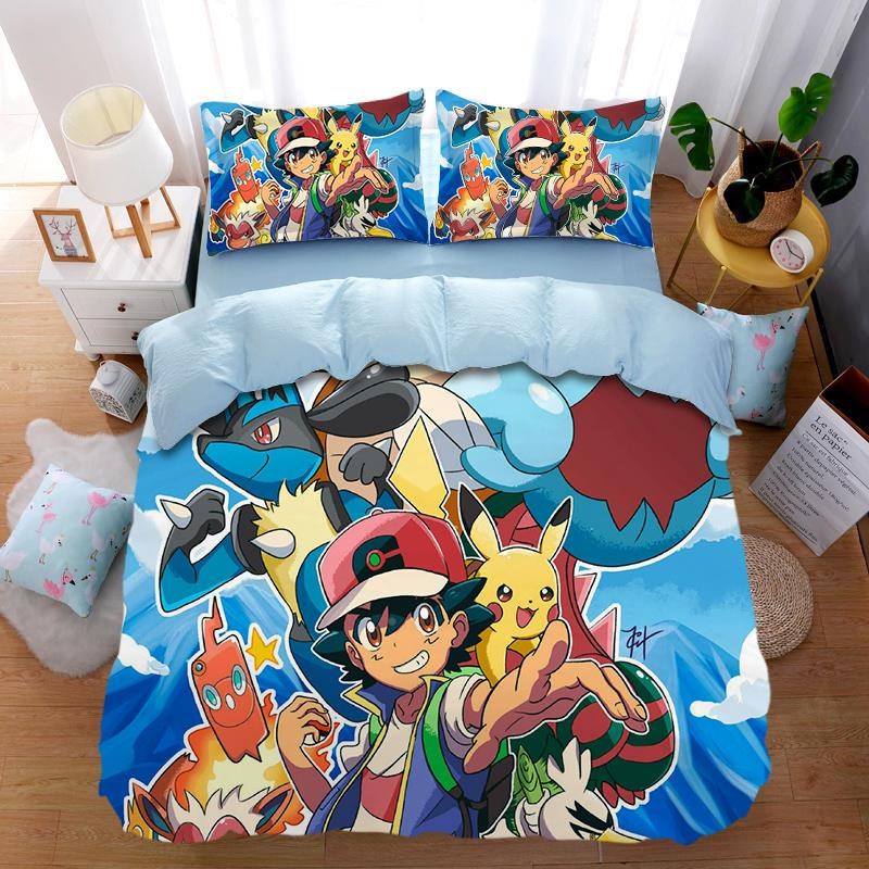 儿童房可爱皮卡丘卡通纯棉床品3四件套学生宿舍全棉被套宝可梦1.5