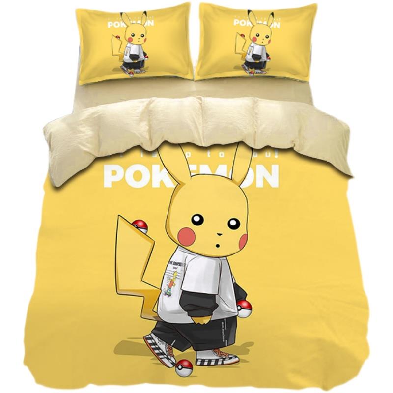 可爱皮卡丘卡通纯棉床品3四件套