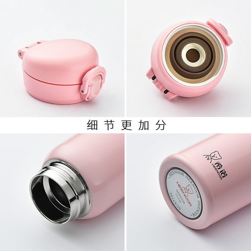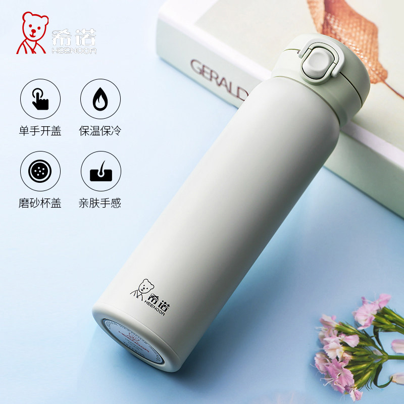 希诺保温杯女清新可爱高颜值款316L不锈钢弹盖水杯单手一键开启杯