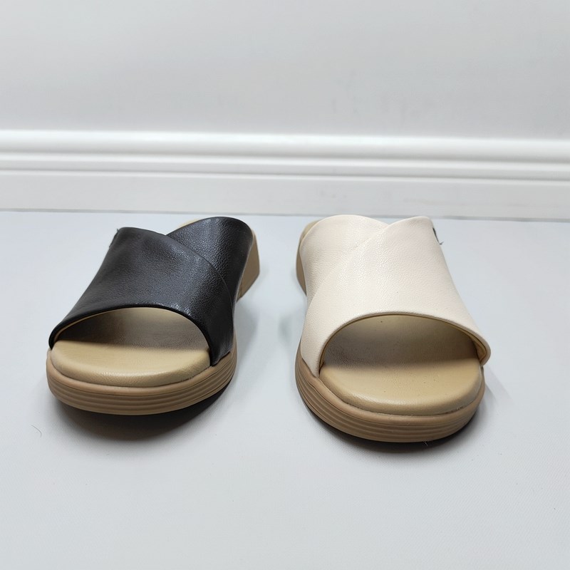 撤柜女鞋新款夏季外穿24断码真皮坡跟H厚底软底软面牛皮一字凉拖