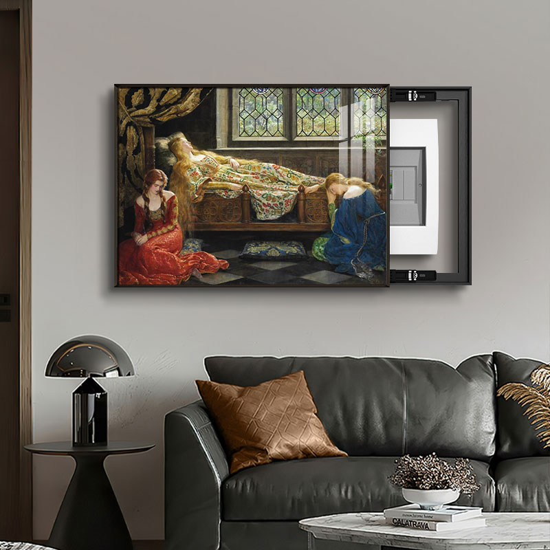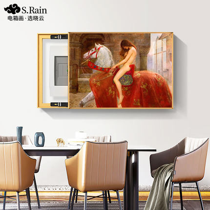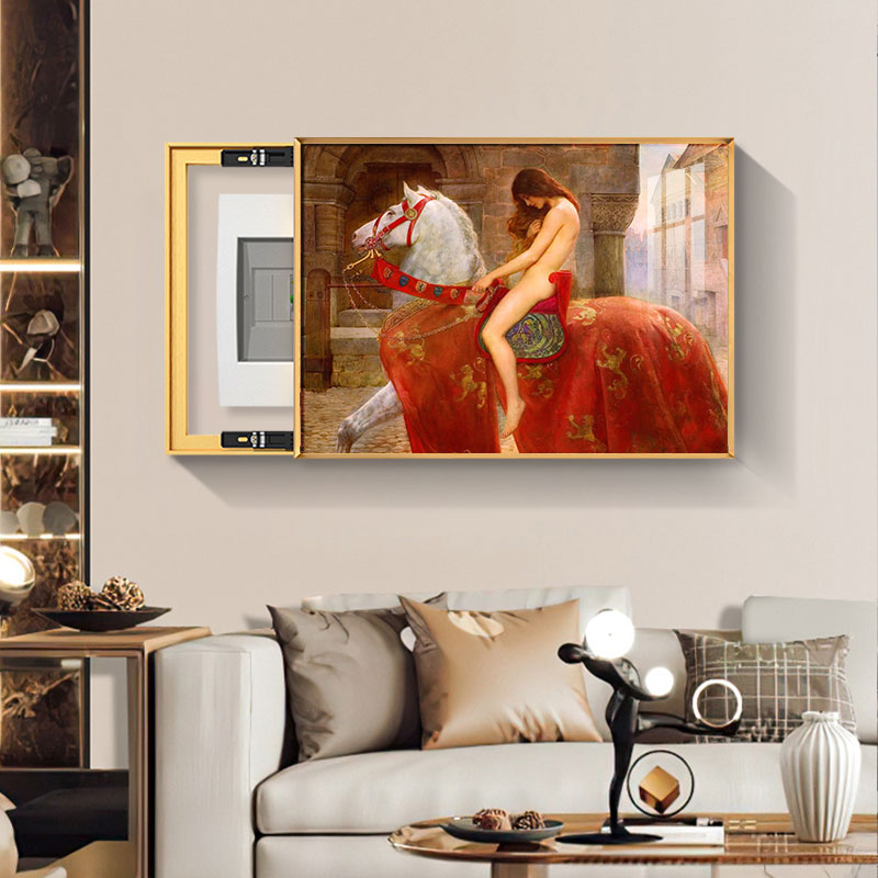 马背上的戈黛娃夫人油画电表箱装饰画高级配电箱挂画遮挡客厅电闸