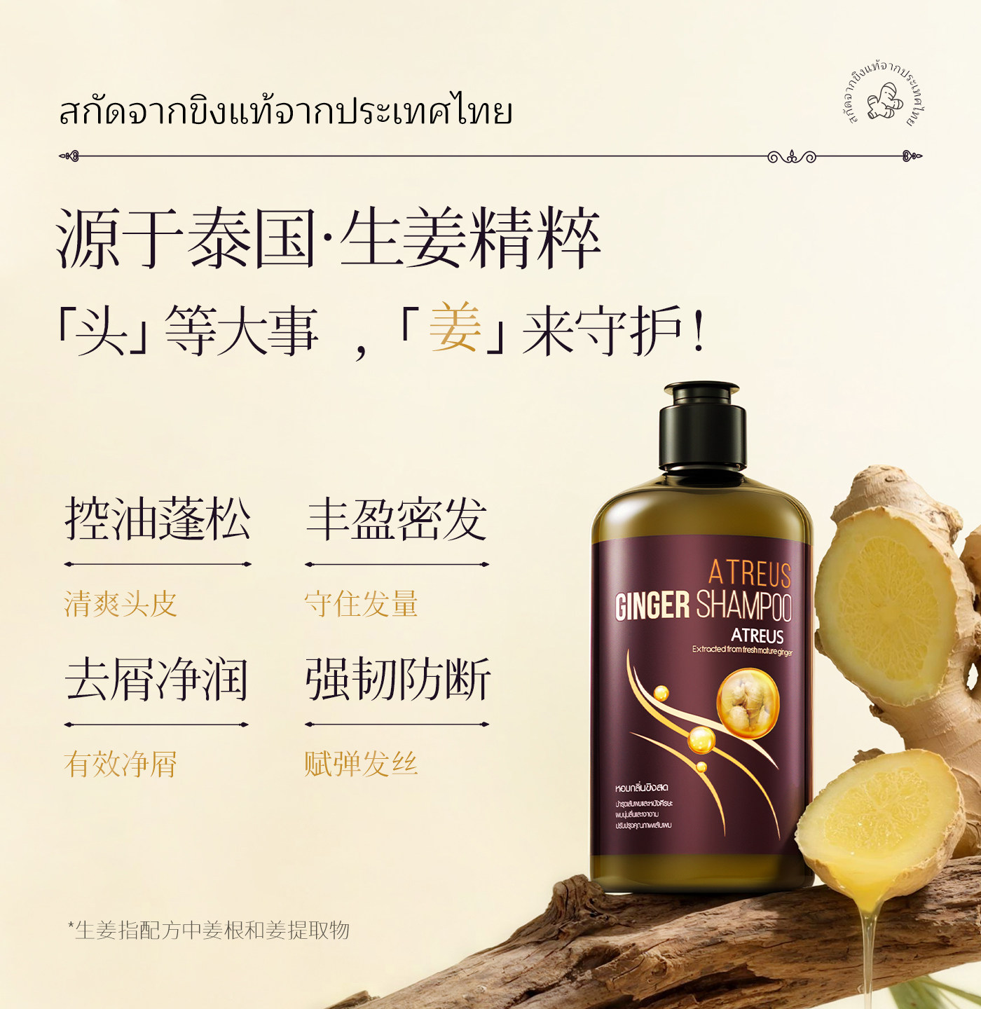 泰国ATREUS生姜洗发水控油蓬松去屑防断发护发套装正品官方旗舰店