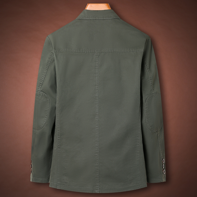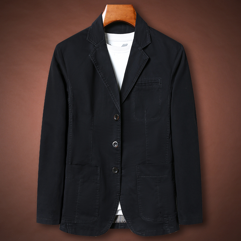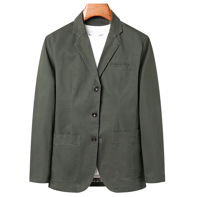休闲西服男春秋季商务纯棉西装上衣服中年宽松大码纯色单西男外套