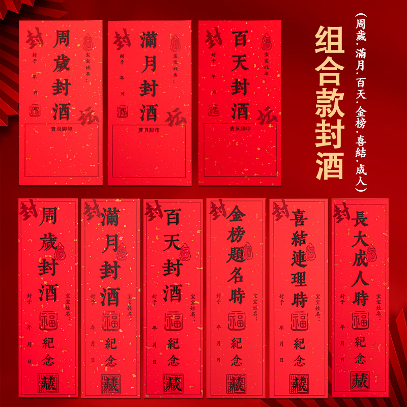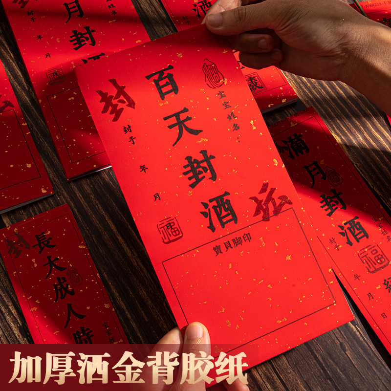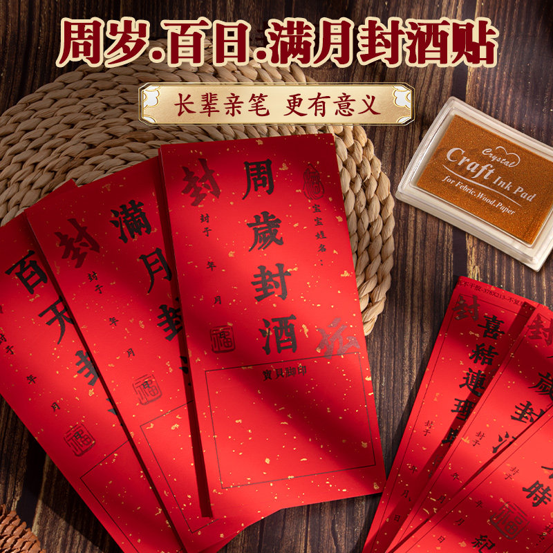 周岁封酒小孩宝宝足印封酒贴纸一周岁满月手写大号女儿红封坛条膜纸专用套装五粮液贴百日百天结婚礼宴小孩