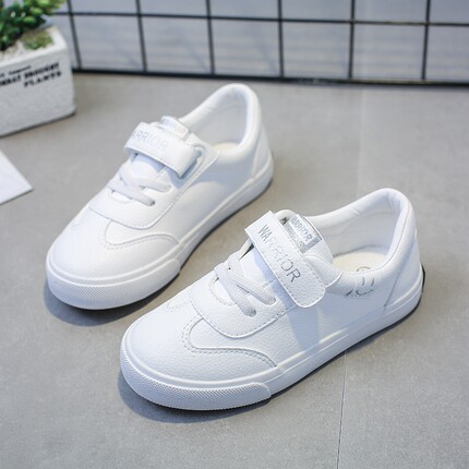 回力童鞋春秋季新款儿童帆布鞋男童皮面板鞋女童低帮魔术贴小白鞋