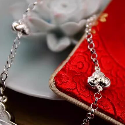 S990银短款项链搭配长命锁