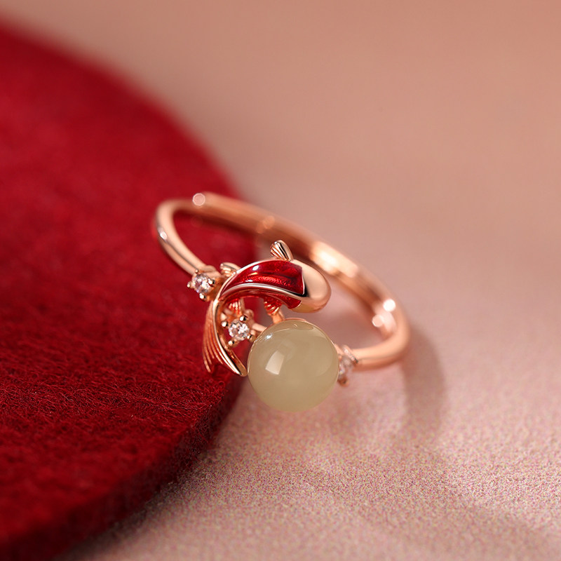 【巷南】925纯银玉见锦鲤戒指新年本命年素圈食指戒女过年开口戒