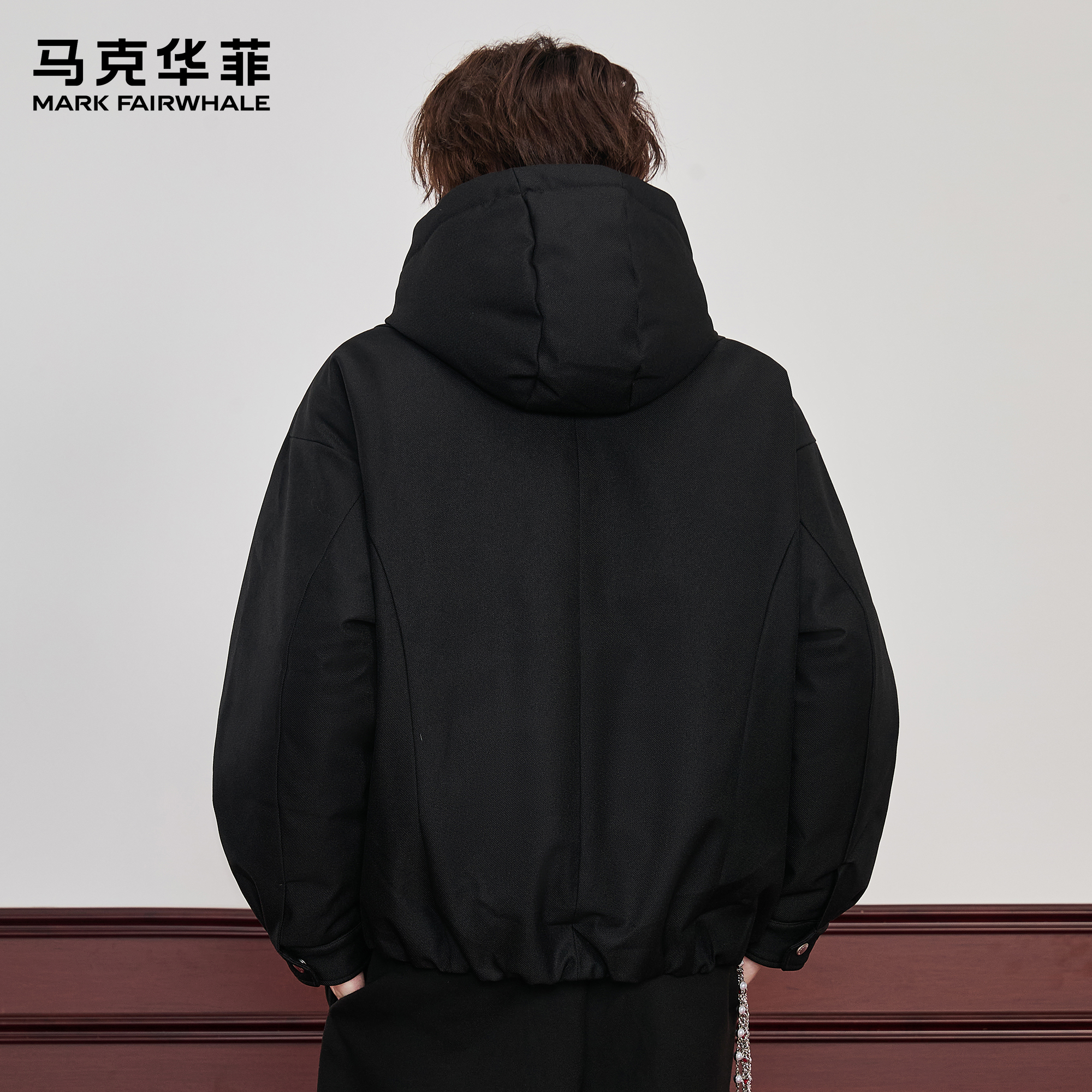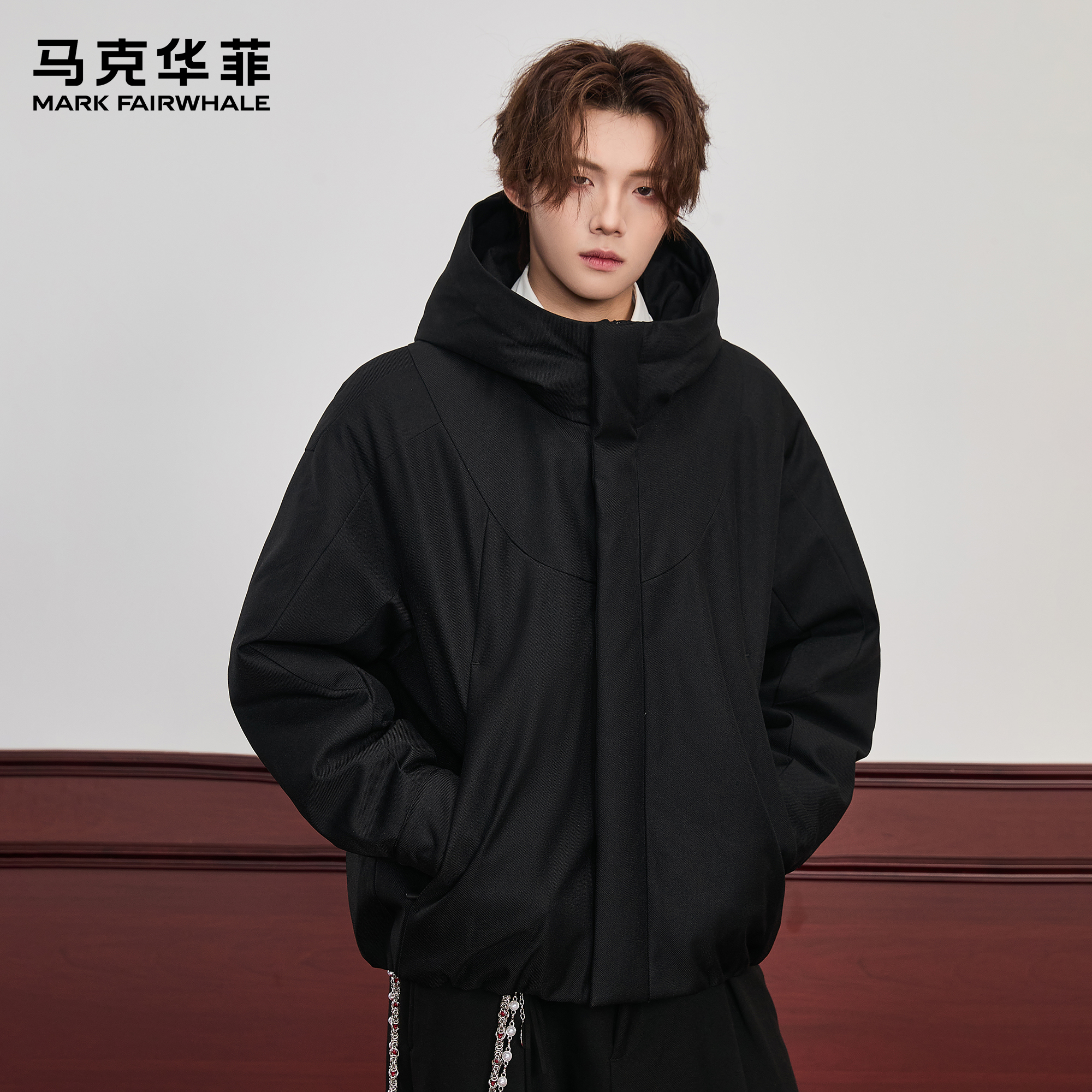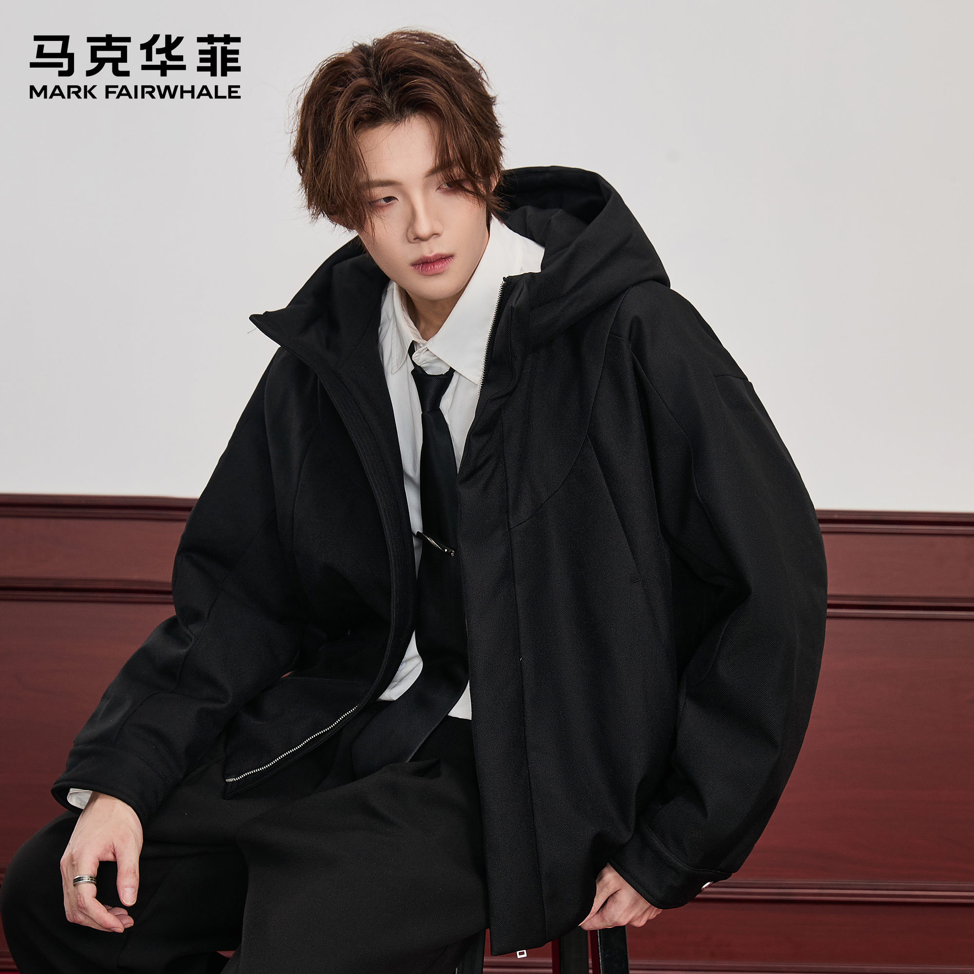 马克华菲连帽羽绒服男冬季新款潮牌黑色高领90白鸭绒宽松大衣外套