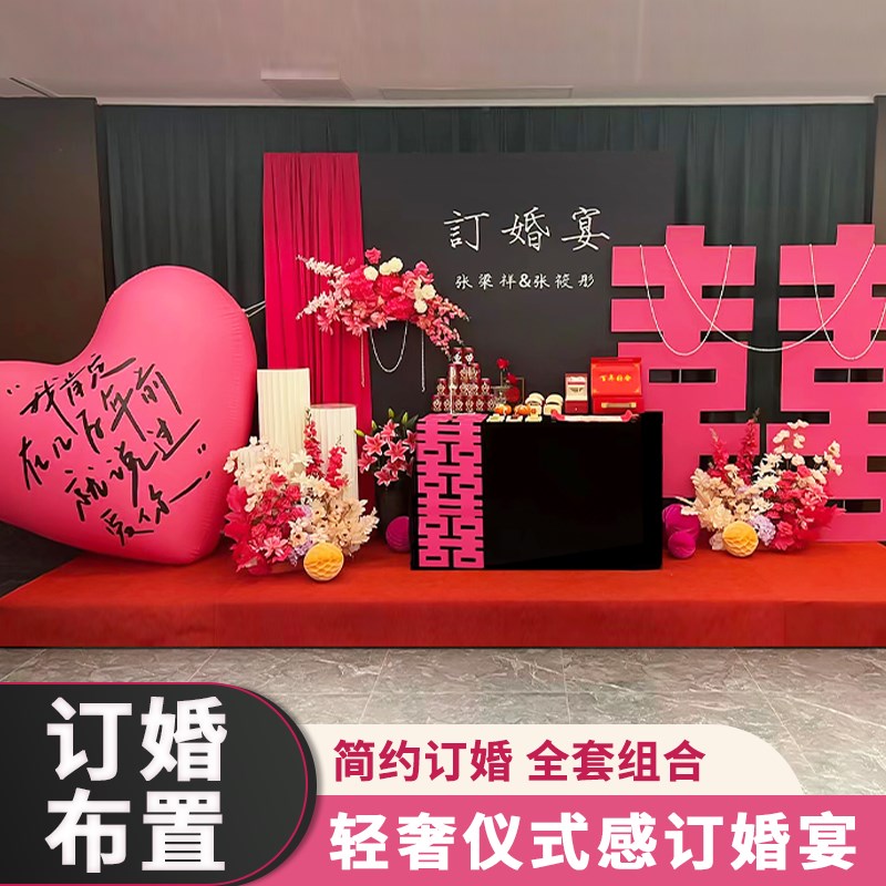 订宴婚装饰场景布置黑粉2023高级感玫红色L超大爱心气球背景墙kt