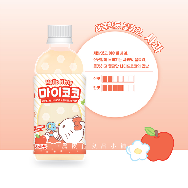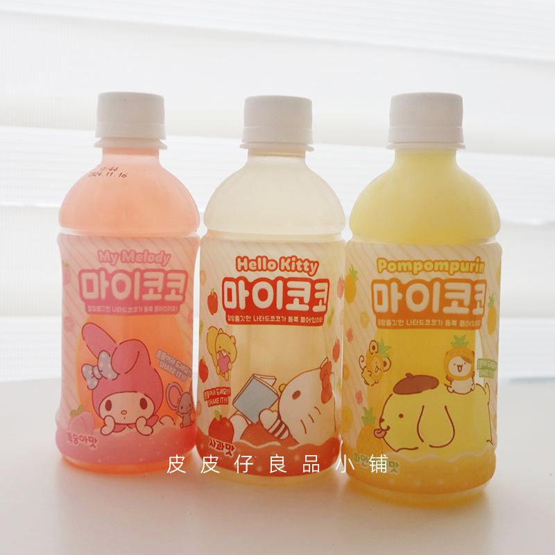 3瓶包邮 韩国三丽鸥HelloKitty联名苹果葡萄桃子味饮料可爱零食