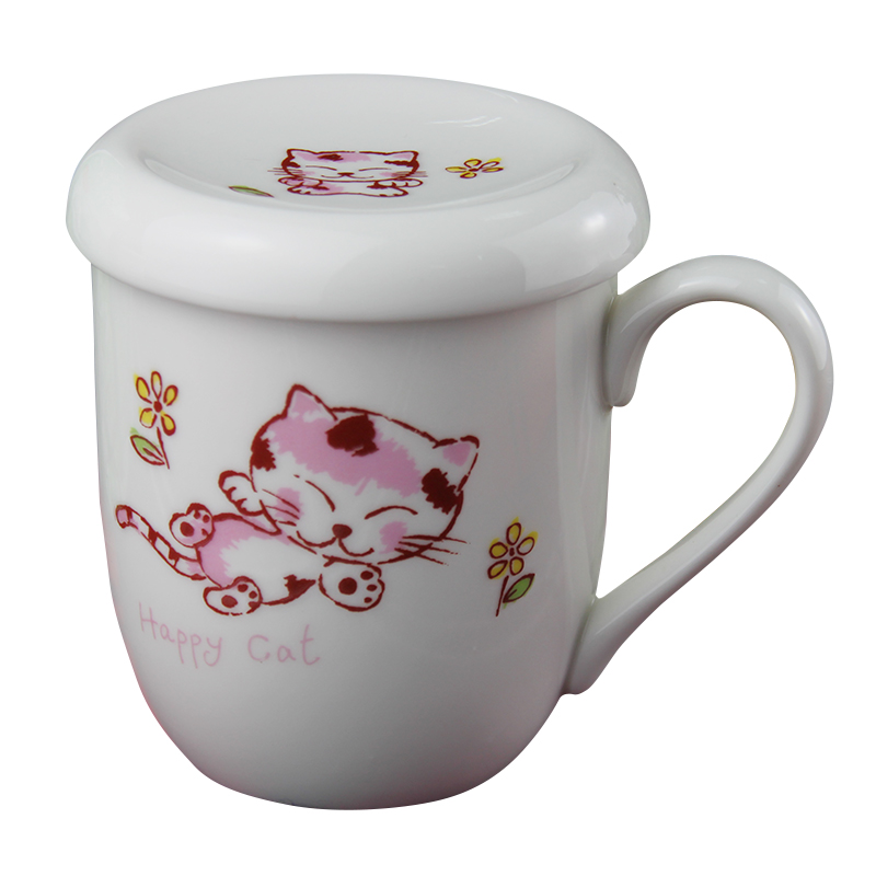 外贸原单陶瓷水杯子带盖马克杯有盖水杯卡通可爱茶杯创意咖啡杯