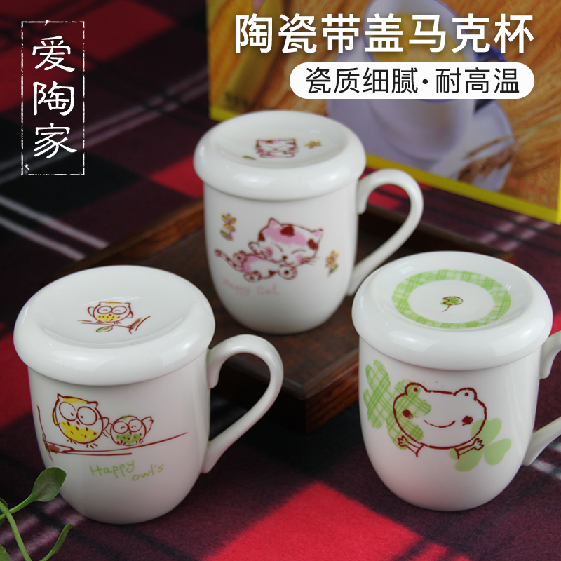 陶瓷卡通风带盖马克杯特价
