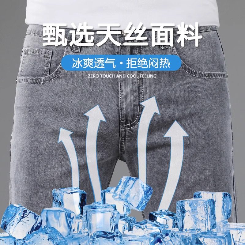 罗蒙天丝超薄灰色牛仔裤男夏季薄款直筒修身百搭2023新款休闲长裤