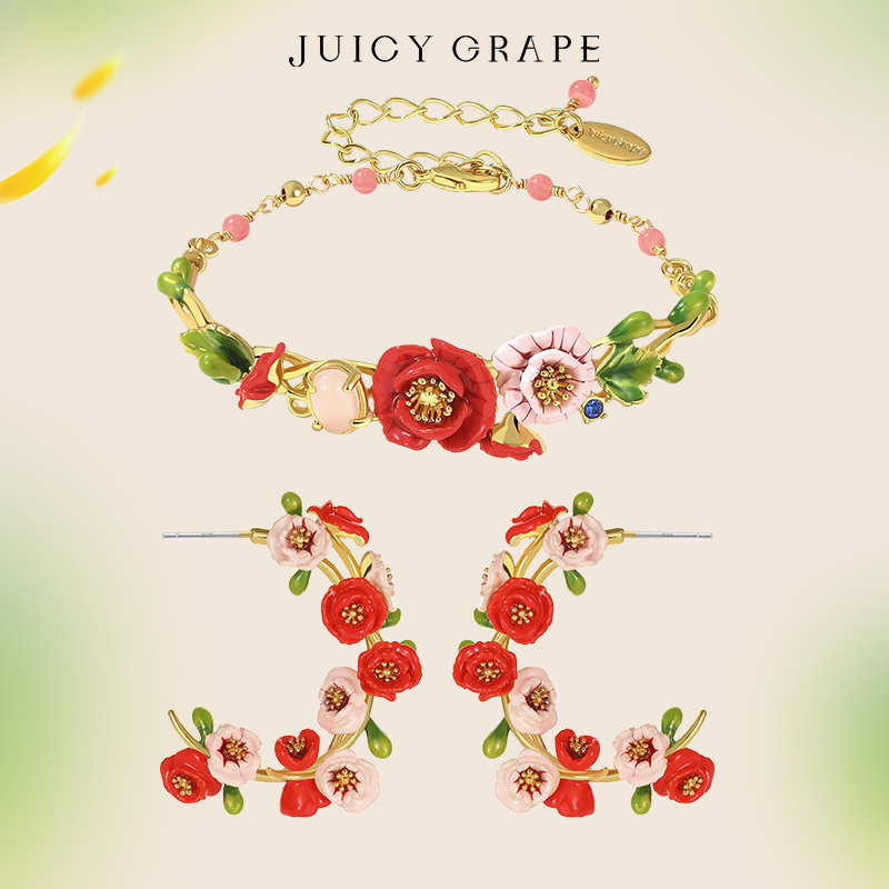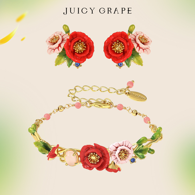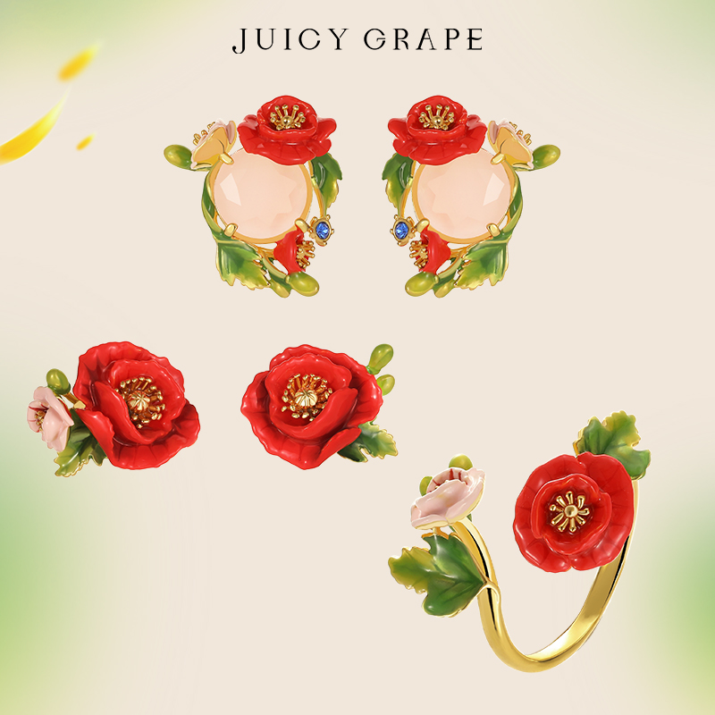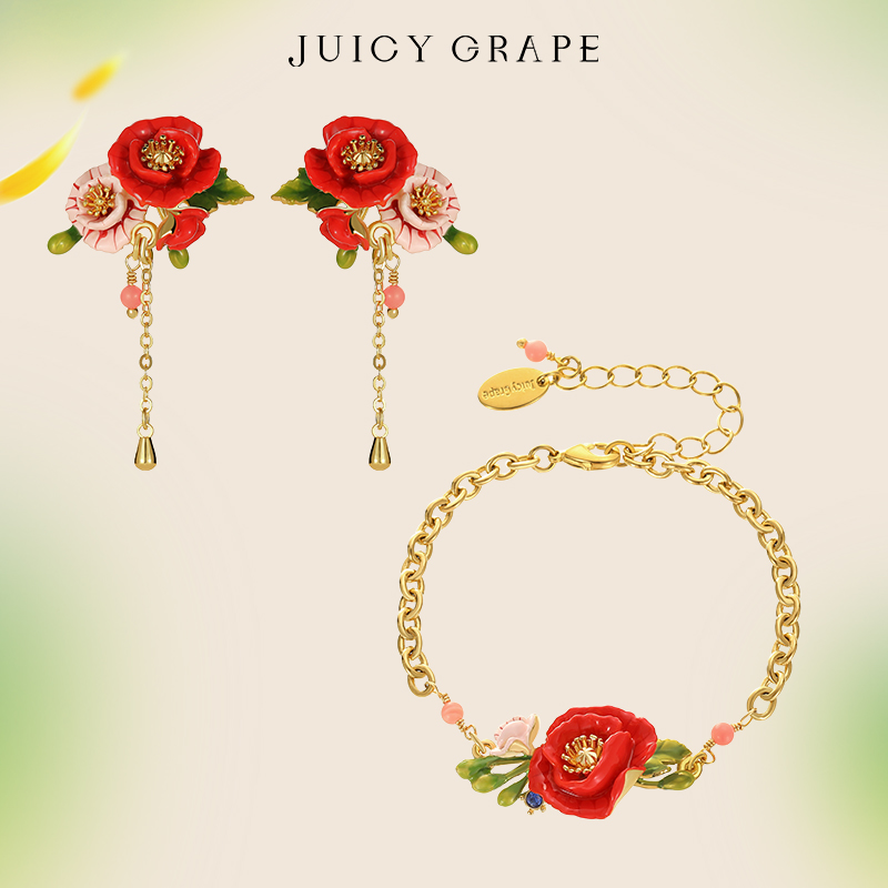 Juicy Grape虞美人花朵戒指项链手链耳饰耳环女套装节日礼物礼盒