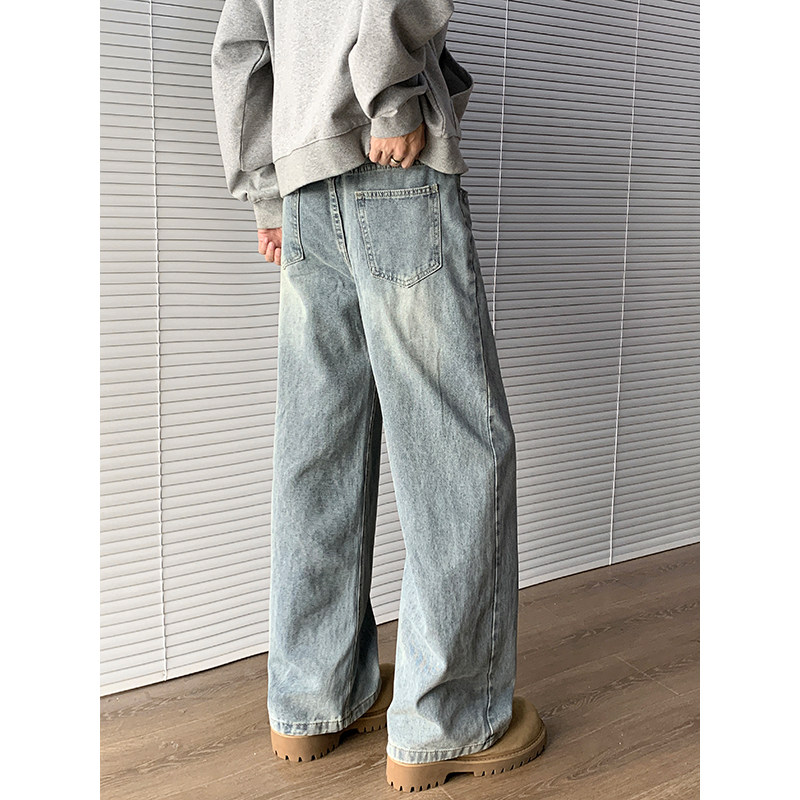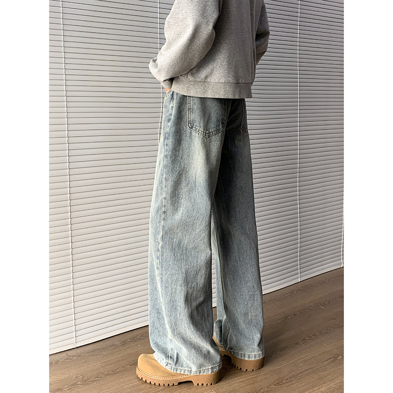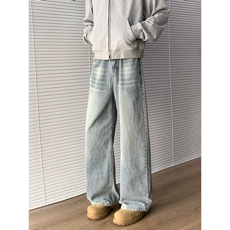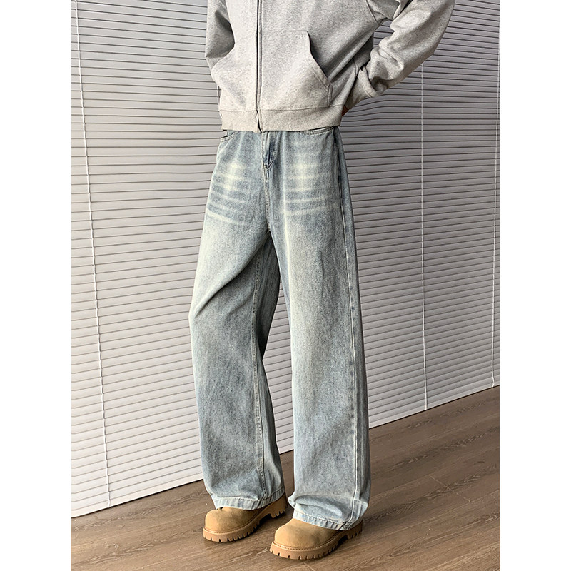 高街vibe水洗微喇弯刀牛仔裤男款美式垂感直筒青少年宽松休闲长裤