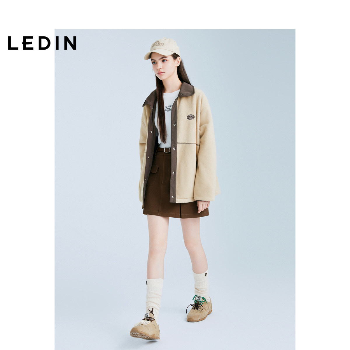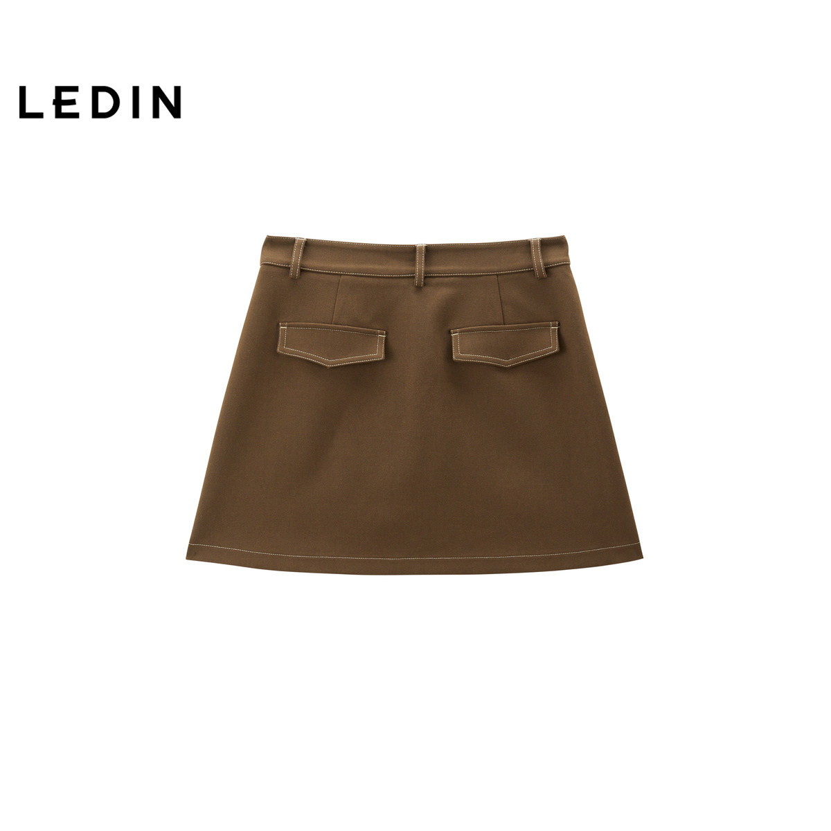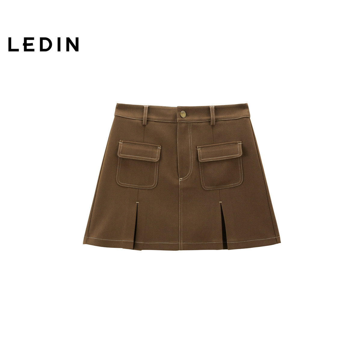 【商场同款】乐町双袋对褶A字裙25春新款深棕色半身裙C2GEF1103*