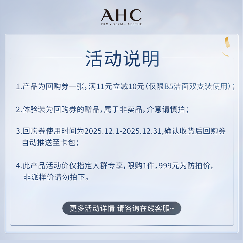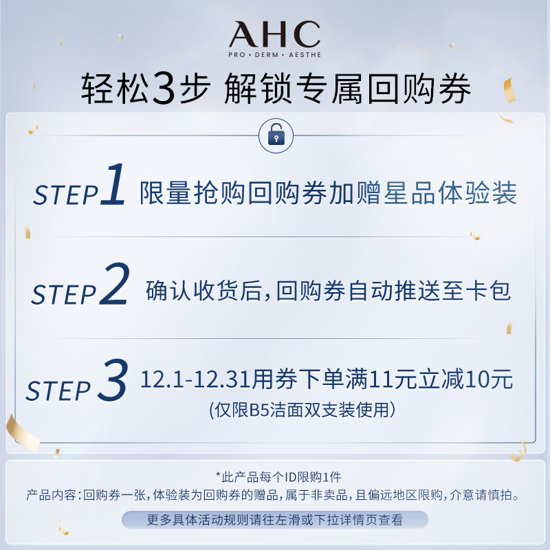 【9.9元会员专享】AHC专属尝鲜礼B5洁面30ml(小样)+惊喜回购券