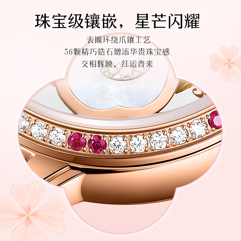 高圆圆同款飞亚达四叶草系列女表机械手表皮带时尚贝母镂空表